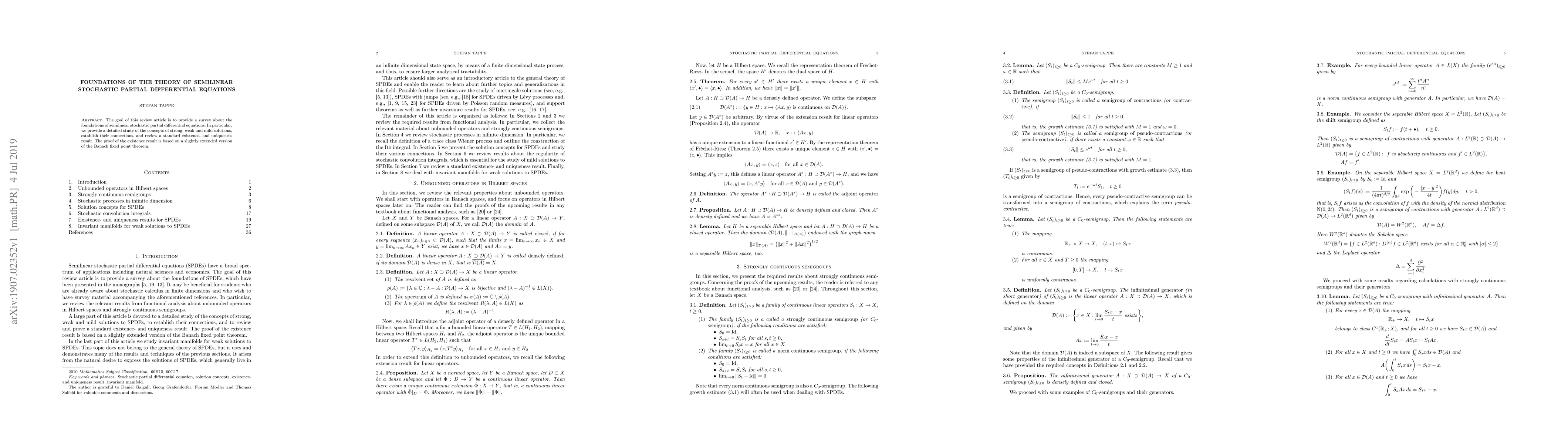This review article surveys the foundations of semilinear stochastic partial differential equations, focusing on solution types, existence- uniqueness results, and their connections to the Banach fixed point theorem.