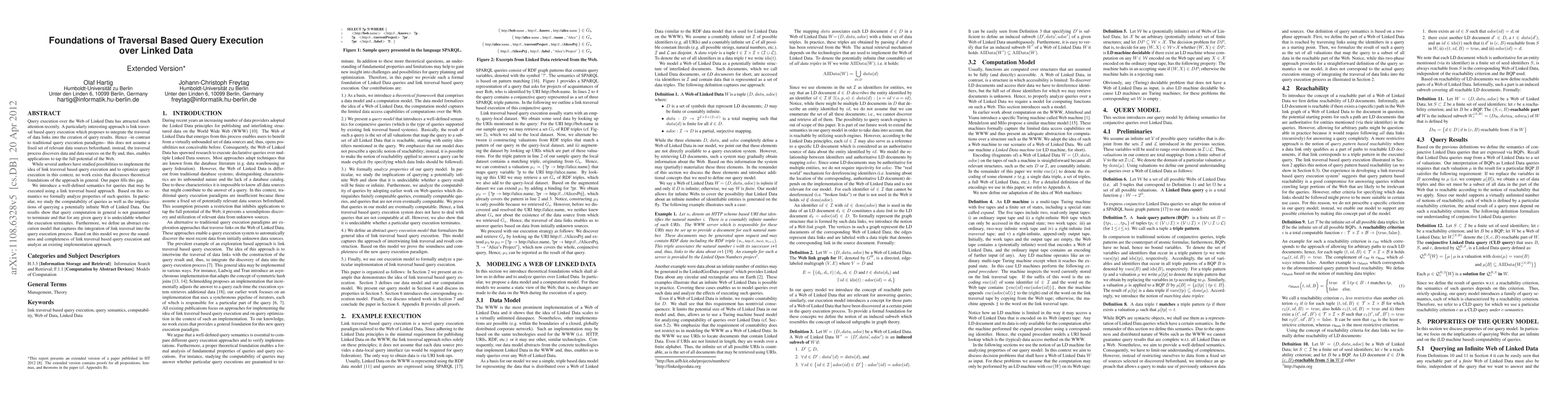 This paper establishes the theoretical foundations of link traversal based query execution over Linked Data, introducing a formal semantics for such queries and analyzing their computability and termination properties. It shows that query computation may not always terminate and proves the soundness and completeness of the proposed execution model.