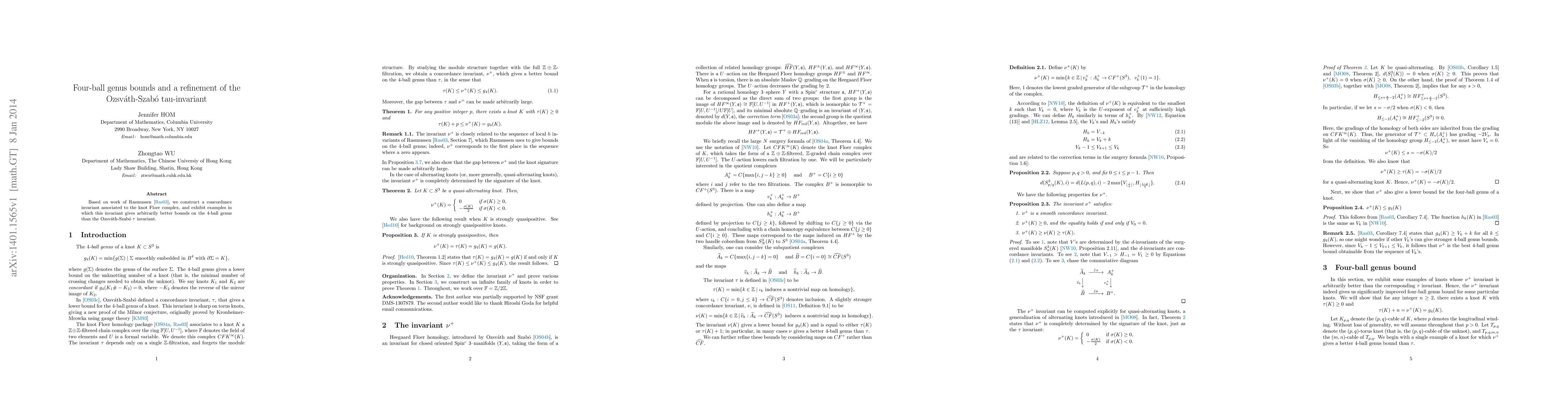 Title: Four-ball genus bounds and a refinement of the Ozsvath-Szabo tau-invariant Summary: This paper constructs a new concordance invariant from knot Floer complex, showing it provides superior bounds on the 4-ball genus compared to the existing Ozsvath-Szabo tau invariant.