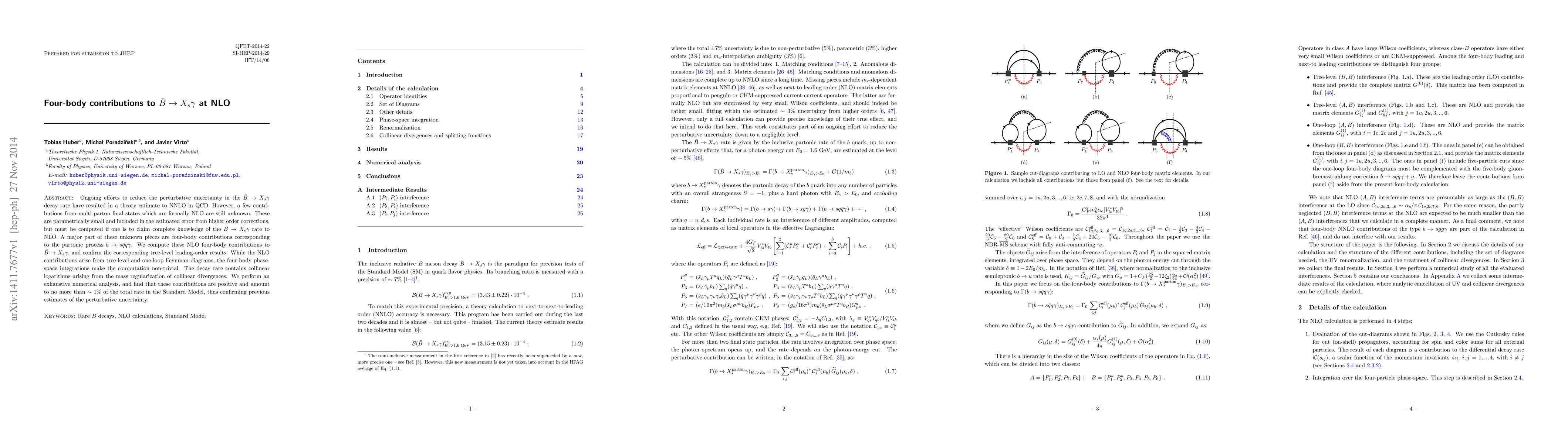 Ongoing efforts to reduce the perturbative uncertainty in the B -> Xs gamma decay rate have resulted in a theory estimate to NNLO in QCD. However, a few contributions from multi-parton final states which are formally NLO are still unknown. These are parametrically small and included in the estimated error from higher order corrections, but must be computed if one is to claim complete knowledge of the B -> Xs gamma rate to NLO. A major part of these unknown pieces are four-body contributions corresponding to the partonic process b -> s qbar q gamma. We compute these NLO four-body contributions to B -> Xs gamma, and confirm the corresponding tree-level leading-order results. While the NLO contributions arise from tree-level and one-loop Feynman diagrams, the four-body phase-space integrations make the computation non-trivial. The decay rate contains collinear logarithms arising from the mass regularization of collinear divergences. We perform an exhaustive numerical analysis, and find that these contributions are positive and amount to no more than 1% of the total rate in the Standard Model, thus confirming previous estimates of the perturbative uncertainty.
