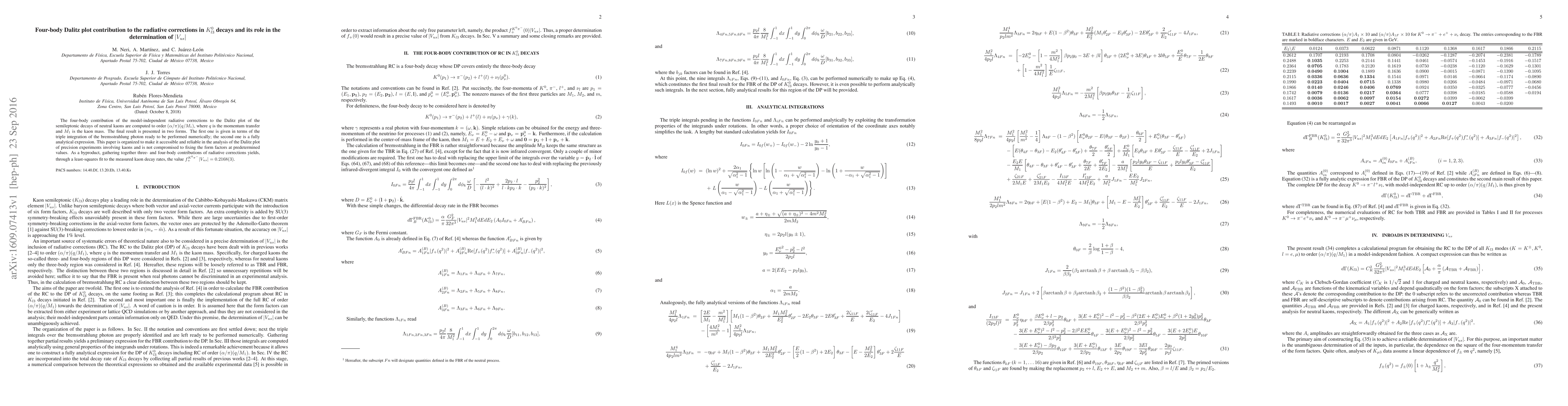 This paper computes the four-body radiative corrections to the Dalitz plot in K_{l3}^0 decays, providing both numerical and analytical expressions. The analysis yields a precise value for |V_{us}| through a least-squares fit, contributing to the determination of fundamental weak interaction parameters.