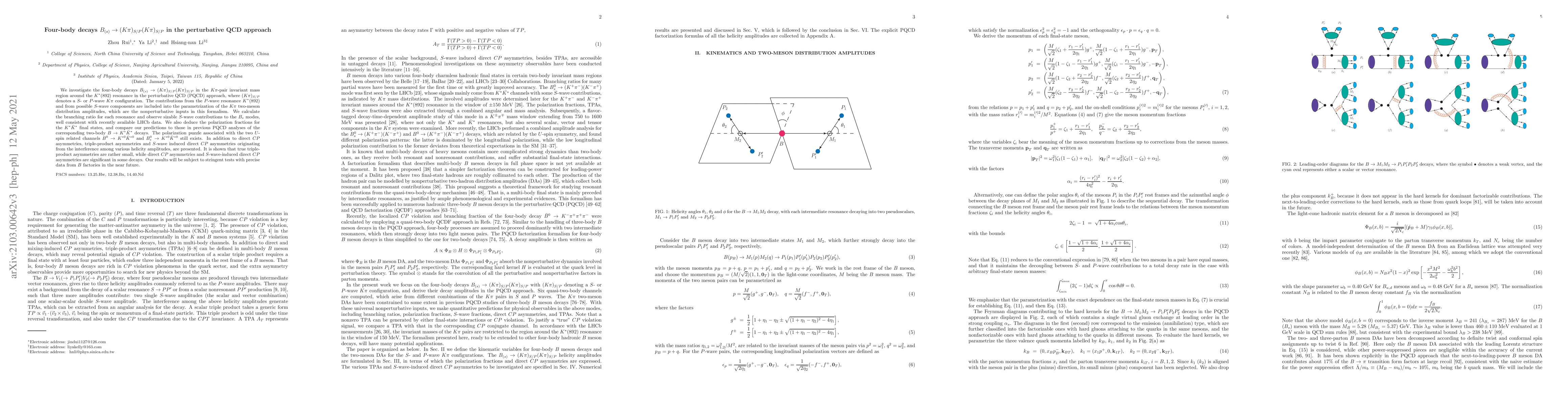 We investigate the four-body decays $B_{(s)} \rightarrow (K\pi)_{S/P} (K\pi)_{S/P}$ in the $K\pi$-pair invariant mass region around the $K^*(892)$ resonance in the perturbative QCD (PQCD) approach, where $(K\pi)_{S/P}$ denotes a $S$- or $P$-wave $K\pi$ configuration. The contributions from the $P$-wave resonance $K^*(892)$ and from possible $S$-wave components are included into the parametrization of the $K\pi$ two-meson distribution amplitudes, which are the nonperturbative inputs in this formalism. We calculate the branching ratio for each resonance and observe sizable $S$-wave contributions to the $B_s$ modes, well consistent with recently available LHCb data. We also deduce the polarization fractions for the $K^*\bar{K}^*$ final states, and compare our predictions to those in previous PQCD analyses of the corresponding two-body $B\to K^*\bar{K}^*$ decays. The polarization puzzle associated with the two $U$-spin related channels $B^0\rightarrow K^{*0}\bar{K}^{*0}$ and $B^0_s\rightarrow K^{*0}\bar{K}^{*0}$ still exists. In addition to direct $CP$ asymmetries, triple-product asymmetries and $S$-wave induced direct $CP$ asymmetries originating from the interference among various helicity amplitudes, are presented. It is shown that true triple-product asymmetries are rather small, while direct $CP$ asymmetries and $S$-wave-induced direct $CP$ asymmetries are significant in some decays. Our results will be subject to stringent tests with precise data from $B$ factories in the near future.