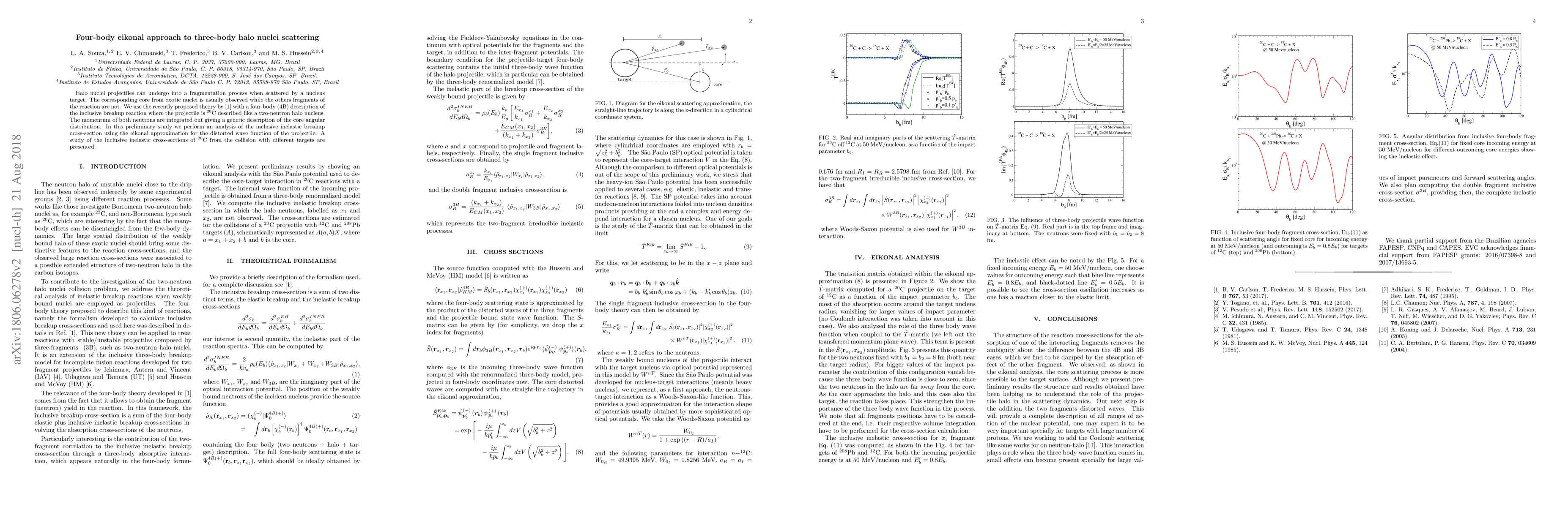 Halo nuclei projectiles can undergo into a fragmentation process when scattered by a nucleus target. The corresponding core from exotic nuclei is usually observed while the others fragments of the reaction are not. We use the recently proposed theory by [Phys. Lett. B767, 53 (2017)] with a four-body description of the inclusive breakup reaction where the projectile is 20C described like a two-neutron halo nucleus. The momentum of both neutrons are integrated out giving a generic description of the core angular distribution. In this preliminary study we perform an analysis of the inclusive inelastic breakup cross-section using the eikonal approximation for the distorted wave function of the projectile. A study of the inclusive inelastic cross-sections of 20C from the collision with different targets are presented.
