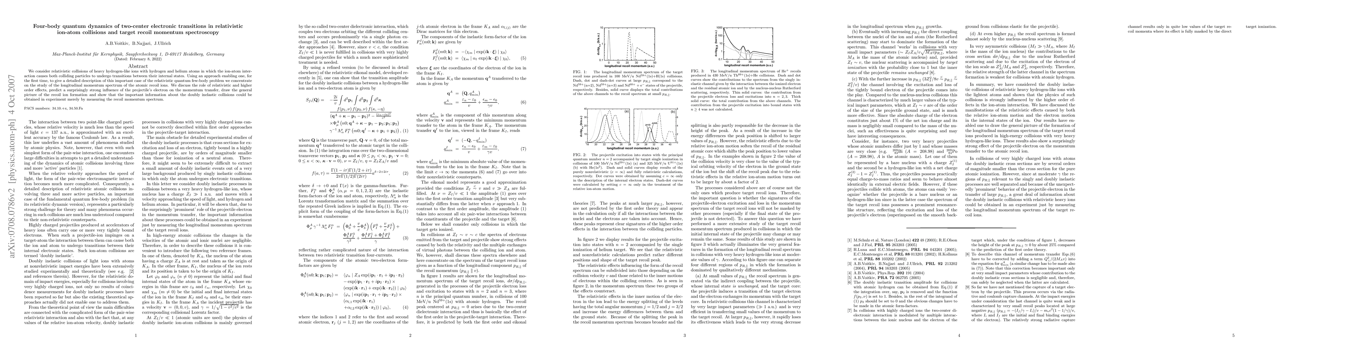 This paper investigates relativistic ion-atom collisions where both particles undergo internal state transitions, focusing on the four-body quantum dynamics and the longitudinal momentum spectrum of recoil ions. It highlights the significant influence of the projectile's electron on momentum transfer and suggests that recoil momentum spectroscopy can reveal crucial information about the doubly inelastic collisions.