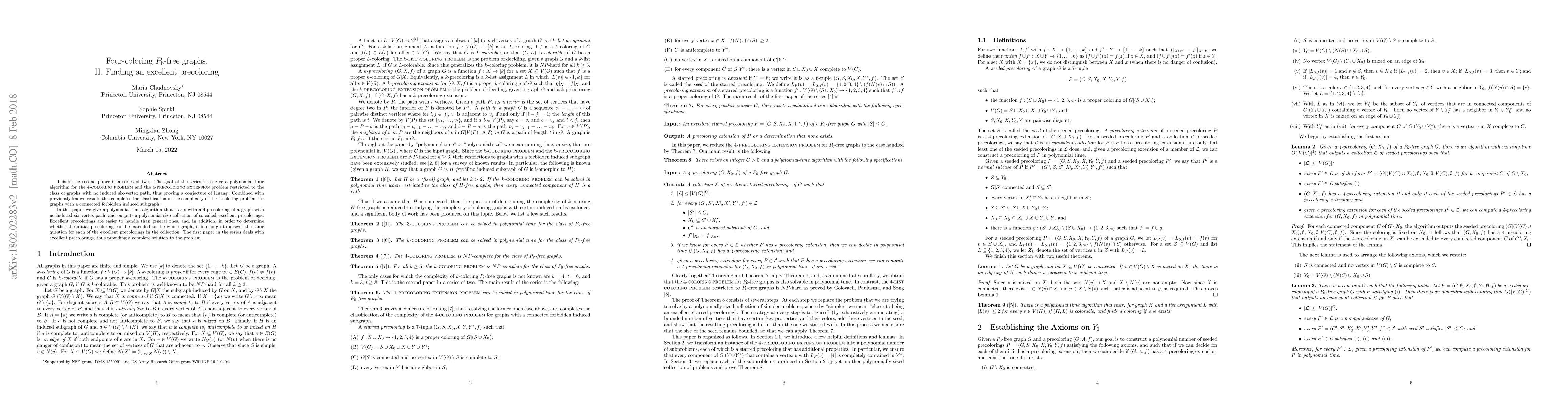 This is the second paper in a series of two. The goal of the series is to give a polynomial time algorithm for the $4$-coloring problem and the $4$-precoloring extension problem restricted to the class of graphs with no induced six-vertex path, thus proving a conjecture of Huang. Combined with previously known results this completes the classification of the complexity of the $4$-coloring problem for graphs with a connected forbidden induced subgraph. In this paper we give a polynomial time algorithm that starts with a $4$-precoloring of a graph with no induced six-vertex path, and outputs a polynomial-size collection of so-called excellent precolorings. Excellent precolorings are easier to handle than general ones, and, in addition, in order to determine whether the initial precoloring can be extended to the whole graph, it is enough to answer the same question for each of the excellent precolorings in the collection. The first paper in the series deals with excellent precolorings, thus providing a complete solution to the problem.