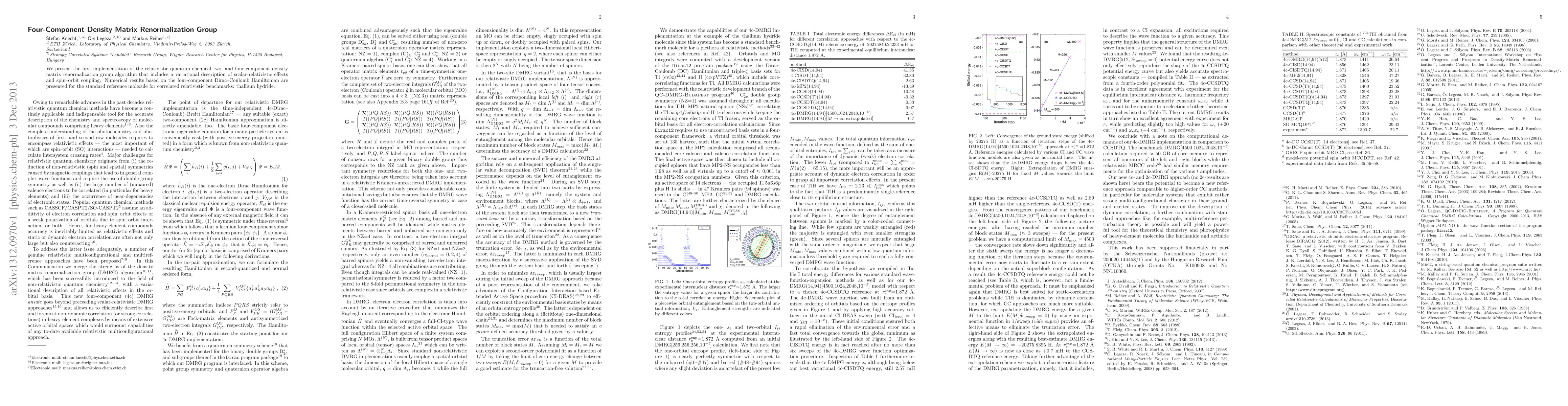 The paper presents the first implementation of a relativistic quantum chemical two- and four-component density matrix renormalization group (DMRG) algorithm that includes a variational description of scalar-relativistic effects and spin-orbit coupling. It demonstrates the capabilities of the 4c-DMRG implementation using thallium hydride (TlH) as a benchmark, a standard reference molecule for correlated relativistic benchmarks.