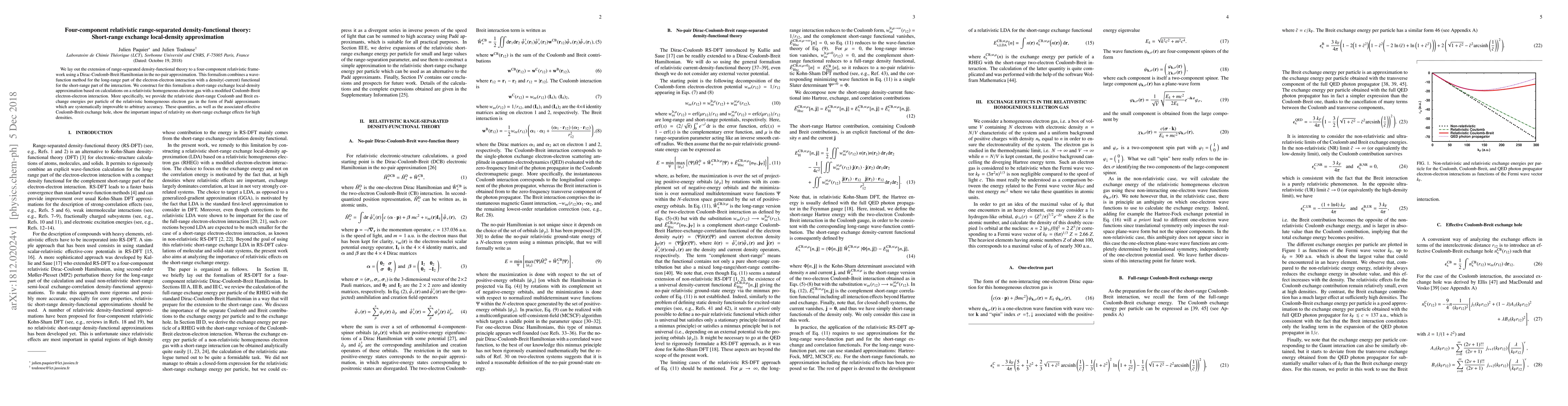 This paper extends range-separated density-functional theory to a four-component relativistic framework using a Dirac-Coulomb-Breit Hamiltonian, combining long-range wave-function methods with short-range density functionals. It develops a short-range exchange local-density approximation, providing relativistic short-range Coulomb and Breit exchange energies for high densities.