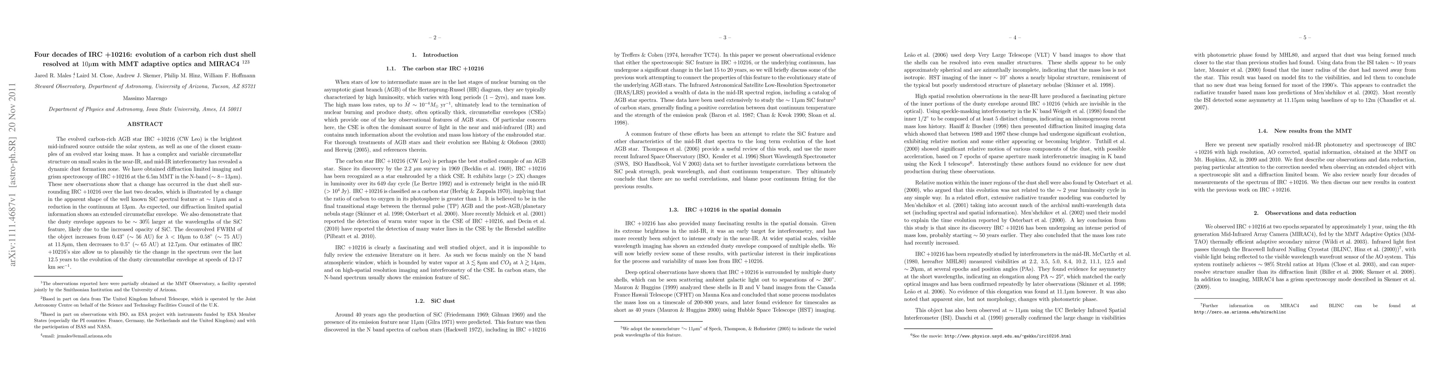 The evolved carbon-rich AGB star IRC +10216 (CW Leo) is the brightest mid-infrared source outside the solar system, as well as one of the closest examples of an evolved star losing mass. It has a complex and variable circumstellar structure on small scales in the near-IR, and mid-IR interferometry has revealed a dynamic dust formation zone. We have obtained diffraction limited imaging and grism spectroscopy of IRC +10216 at the 6.5m MMT in the N-band (~8-13 microns). These new observations show that a change has occurred in the dust shell surrounding IRC +10216 over the last two decades, which is illustrated by a change in the apparent shape of the well known SiC spectral feature at ~11 microns and a reduction in the continuum at 13 microns. As expected, our diffraction limited spatial information shows an extended circumstellar envelope. We also demonstrate that the dusty envelope appears to be ~30% larger at the wavelengths of the SiC feature, likely due to the increased opacity of SiC. The deconvolved FWHM of the object increases from 0.43" (~56 AU) for wavelength < 10 microns to 0.58" (~75 AU) at 11.8 microns, then decreases to 0.5" (~65 AU) at 12.7 microns. Our estimates of IRC +10216's size allow us to plausibly tie the change in the spectrum over the last 12.5 years to the evolution of the dusty circumstellar envelope at speeds of 12-17 km/sec.