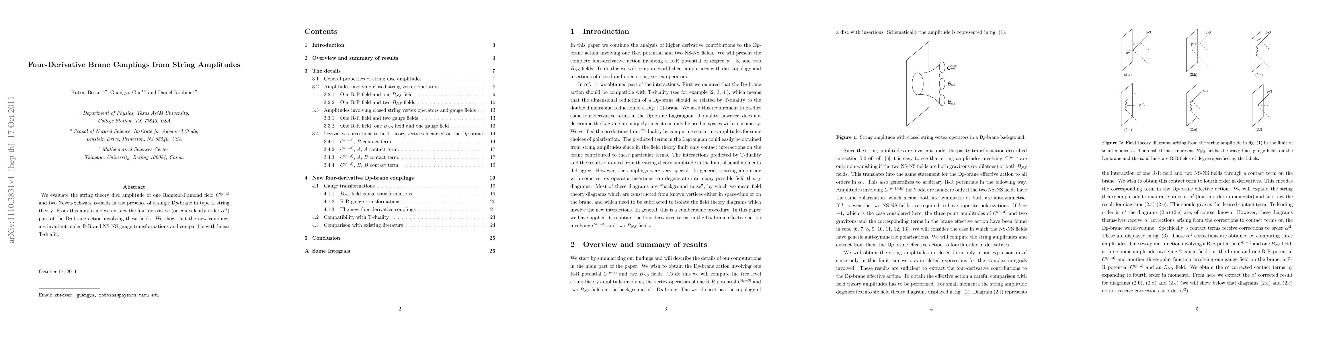 This paper evaluates string theory amplitudes to derive four-derivative couplings for Dp-branes in type II string theory, revealing new invariant couplings involving Ramond-Ramond and Neveu-Schwarz B-fields, consistent with gauge and T-duality transformations.