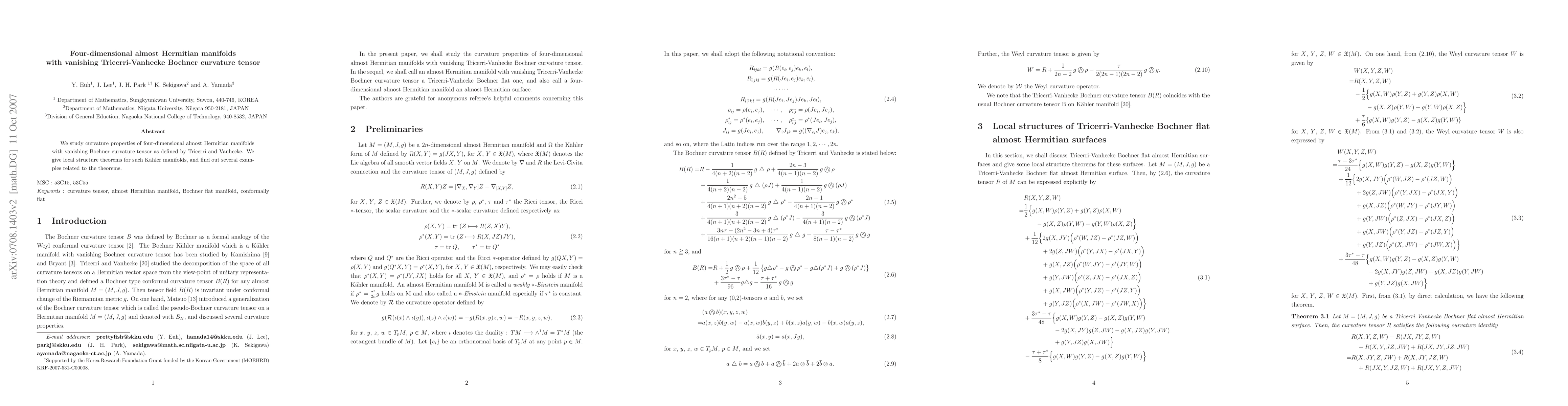 Summary: This paper investigates the curvature properties of four-dimensional almost Hermitian manifolds with vanishing Tricerri-Vanhecke Bochner curvature tensor, providing local structure theorems for Kähler manifolds and illustrating these with several examples.