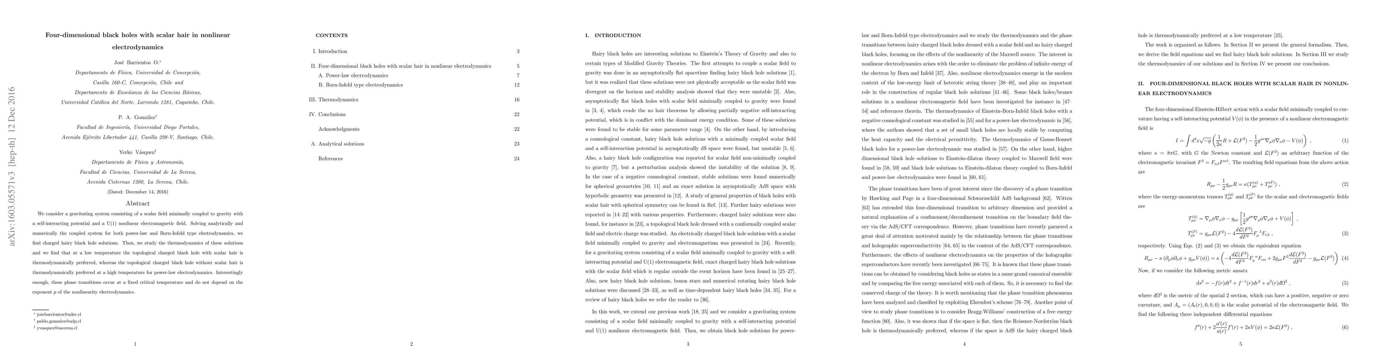 This paper explores four-dimensional black holes with scalar hair influenced by nonlinear electrodynamics, finding charged hairy black hole solutions for both power-law and Born-Infeld types. It reveals thermodynamic phase transitions where scalar-haired black holes are preferred at low temperatures, while non-haired black holes dominate at high temperatures, independent of the electrodynamics nonlinearity exponent.