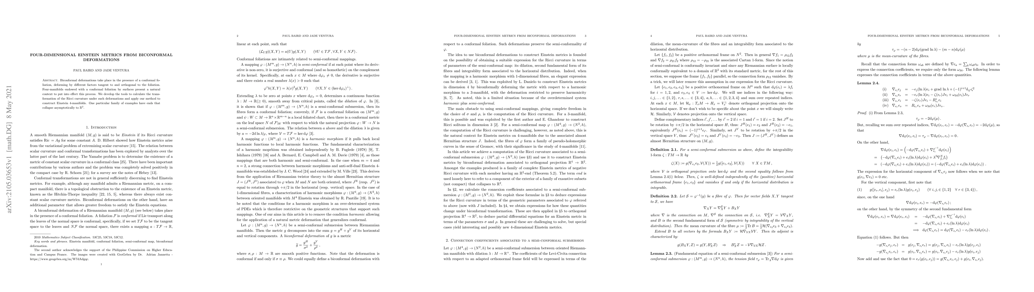 This paper develops methods to calculate Ricci curvature transformations under biconformal deformations in four-manifolds with conformal foliations, and uses these tools to construct Einstein four-manifolds, including a family with ends collapsing asymptotically to ${\mathbb R}^2$.