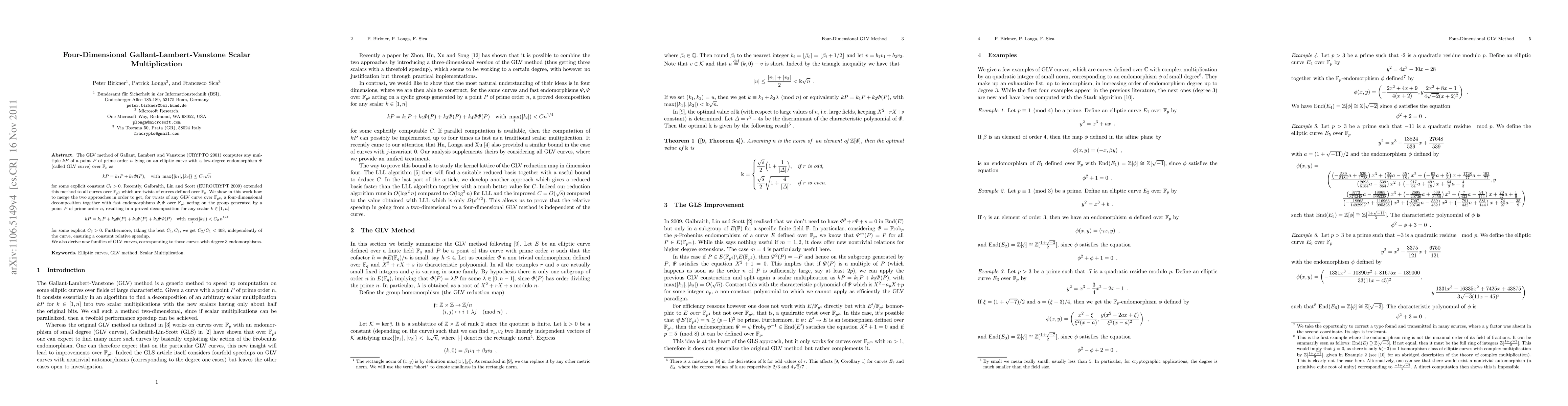 The GLV method of Gallant, Lambert and Vanstone (CRYPTO 2001) computes any multiple $kP$ of a point $P$ of prime order $n$ lying on an elliptic curve with a low-degree endomorphism $\Phi$ (called GLV curve) over $\mathbb{F}_p$ as [kP = k_1P + k_2\Phi(P), \quad\text{with} \max{|k_1|,|k_2|}\leq C_1\sqrt n] for some explicit constant $C_1>0$. Recently, Galbraith, Lin and Scott (EUROCRYPT 2009) extended this method to all curves over $\mathbb{F}_{p^2}$ which are twists of curves defined over $\mathbb{F}_p$. We show in this work how to merge the two approaches in order to get, for twists of any GLV curve over $\mathbb{F}_{p^2}$, a four-dimensional decomposition together with fast endomorphisms $\Phi, \Psi$ over $\mathbb{F}_{p^2}$ acting on the group generated by a point $P$ of prime order $n$, resulting in a proved decomposition for any scalar $k\in[1,n]$ $$ kP=k_1P+ k_2\Phi(P)+ k_3\Psi(P) + k_4\Psi\Phi(P)\quad \text{with} \max_i (|k_i|)< C_2\, n^{1/4} $$ for some explicit $C_2>0$. Furthermore, taking the best $C_1, C_2$, we get $C_2/C_1<408$, independently of the curve, ensuring a constant relative speedup. We also derive new families of GLV curves, corresponding to those curves with degree 3 endomorphisms.