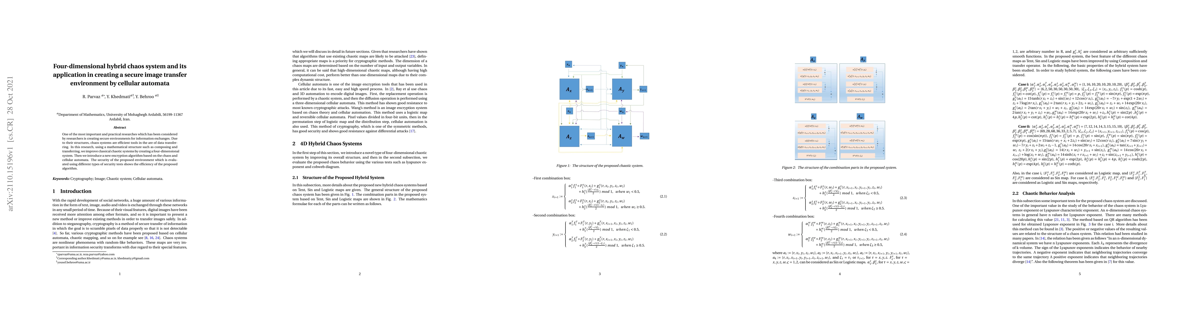 A four-dimensional hybrid chaos system was created to improve security in information exchange, and a new encryption algorithm based on chaos and cellular automata was introduced to protect image transfers.