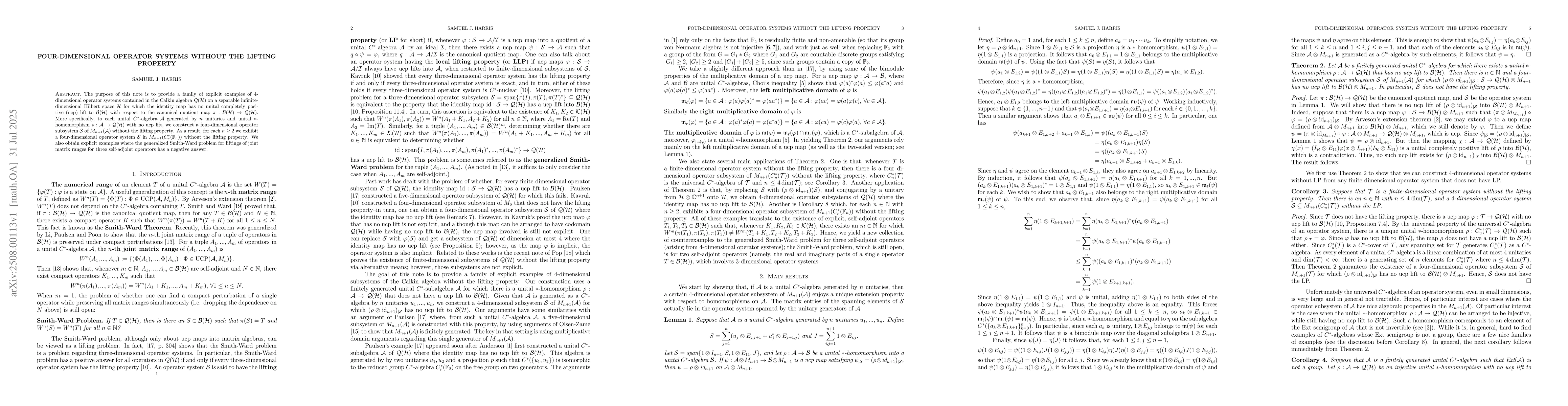 The purpose of this note is to provide a family of explicit examples of $4$-dimensional operator systems contained in the Calkin algebra $\mathcal{Q}(\mathcal{H})$ on a separable infinite-dimensional Hilbert space $\mathcal{H}$ for which the identity map has no unital completely positive (ucp) lift to $\mathcal{B}(\mathcal{H})$ with respect to the canonical quotient map $\pi:\mathcal{B}(\mathcal{H}) \to \mathcal{Q}(\mathcal{H})$. More specifically, to each unital $C^*$-algebra $\mathcal{A}$ generated by $n$ unitaries and unital $*$-homomorphism $\rho:\mathcal{A} \to \mathcal{Q}(\mathcal{H})$ with no ucp lift, we construct a four-dimensional operator subsystem $\mathcal{S}$ of $M_{n+1}(\mathcal{A})$ without the lifting property. As a result, for each $n \geq 2$ we exhibit a four-dimensional operator system $\mathcal{S}$ in $M_{n+1}(C_r^*(\mathbb{F}_n))$ without the lifting property. We also obtain explicit examples where the generalized Smith-Ward problem for liftings of joint matrix ranges for three self-adjoint operators has a negative answer.