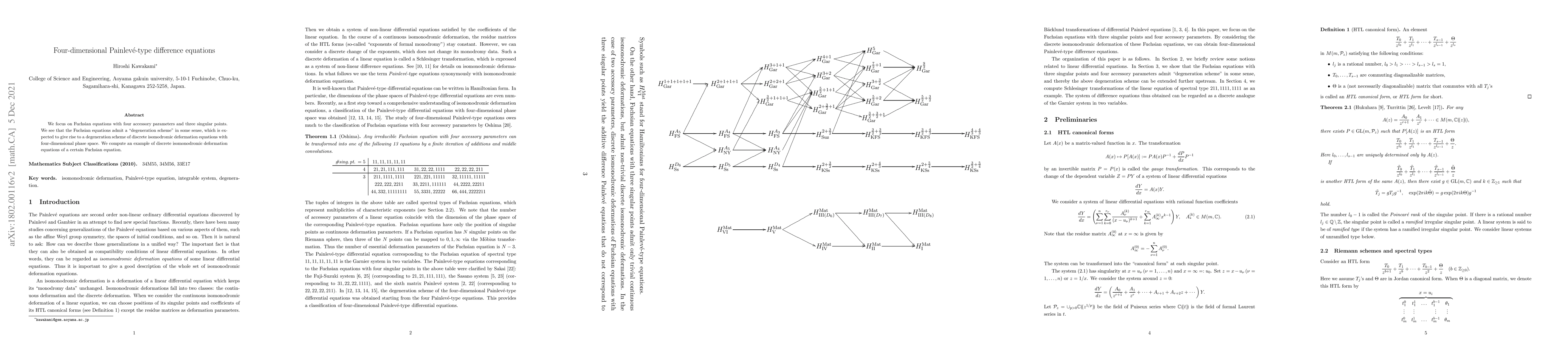 We focus on Fuchsian equations with four accessory parameters and three singular points. We see that the Fuchsian equations admit a "degeneration scheme" in some sense, which is expected to give rise to a degeneration scheme of discrete isomodromic deformation equations with four-dimensional phase space. We compute an example of discrete isomonodromic deformation equations of a certain Fuchsian equation.