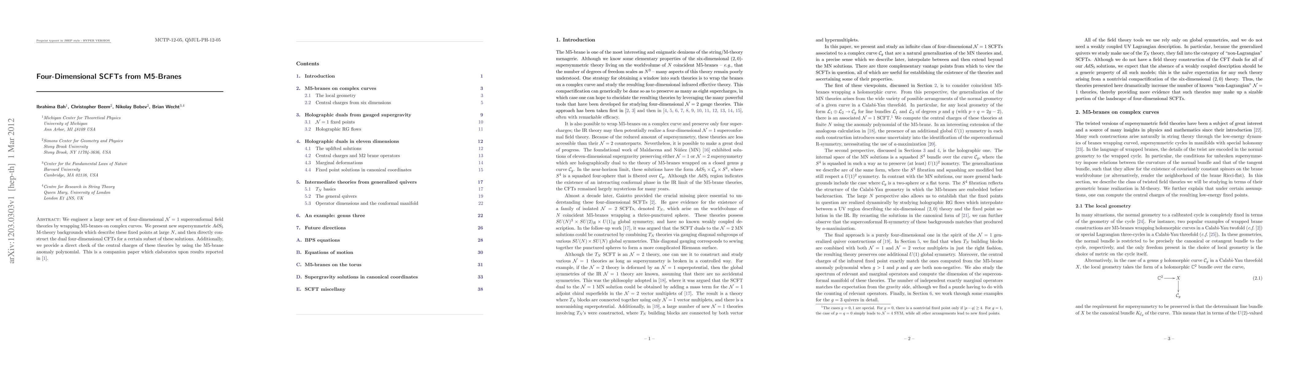 We engineer a large new set of four-dimensional N=1 superconformal field theories by wrapping M5-branes on complex curves. We present new supersymmetric AdS_5 M-theory backgrounds which describe these fixed points at large N, and then directly construct the dual four-dimensional CFTs for a certain subset of these solutions. Additionally, we provide a direct check of the central charges of these theories by using the M5-brane anomaly polynomial. This is a companion paper which elaborates upon results reported in arXiv:1112:5487.