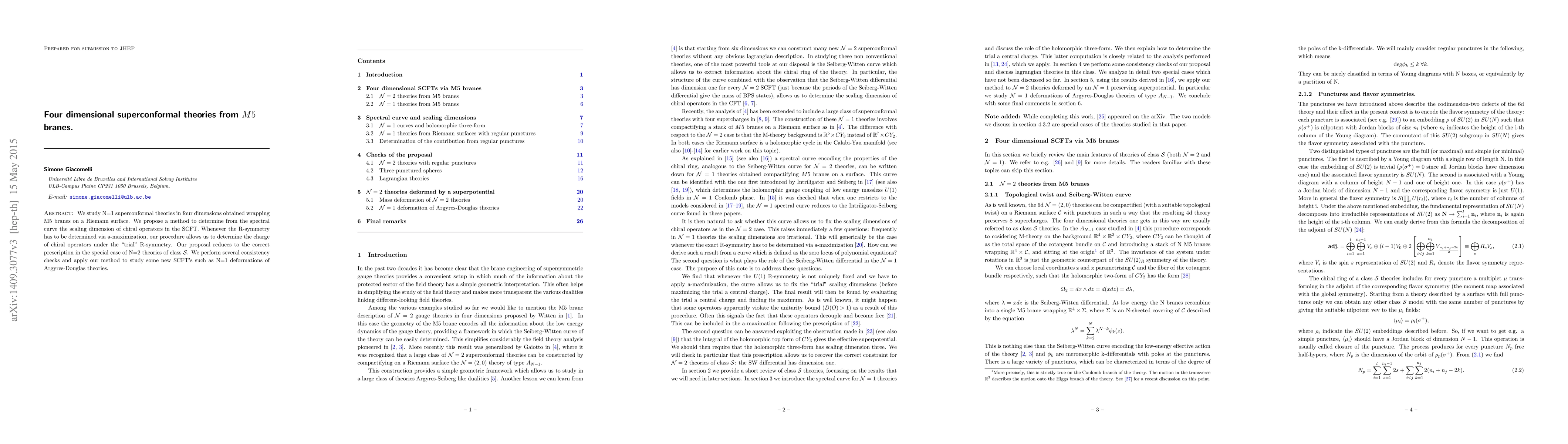 We study N=1 superconformal theories in four dimensions obtained wrapping M5 branes on a Riemann surface. We propose a method to determine from the spectral curve the scaling dimension of chiral operators in the SCFT. Whenever the R-symmetry has to be determined via a-maximization, our procedure allows us to determine the charge of chiral operators under the "trial" R-symmetry. Our proposal reduces to the correct prescription in the special case of N=2 theories of class S. We perform several consistency checks and apply our method to study some new SCFT's such as N=1 deformations of Argyres-Douglas theories.