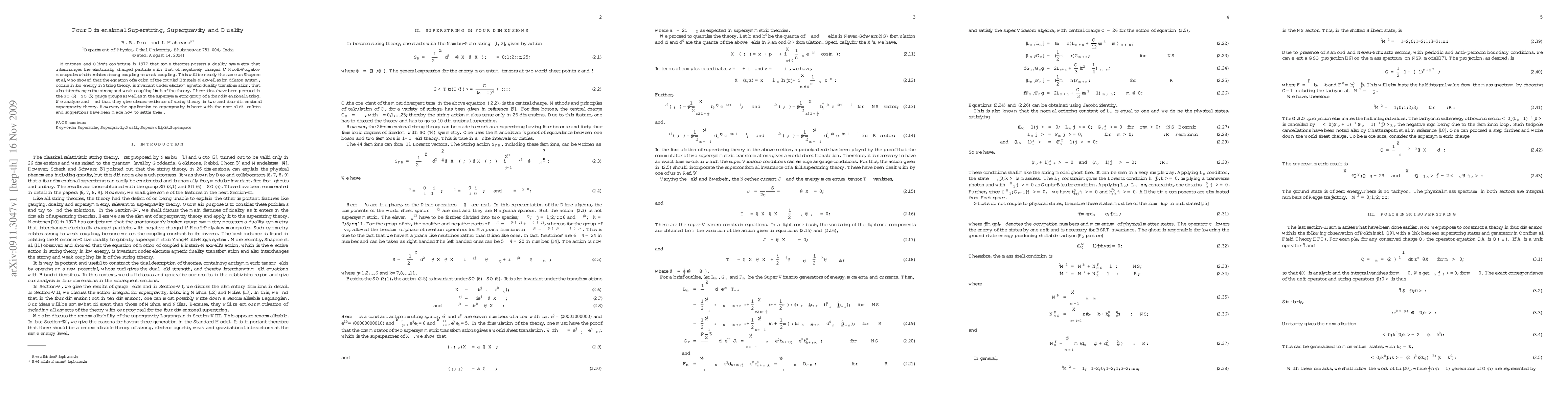 Montonen and Olive's conjecture in 1977 that some theories possess a duality symmetry that interchanges the electrically charged particle with that of negatively charged t' Hooft-Polyakov monopoles which relates strong coupling to weak coupling. This will be nearly the same as Shapere et al, who showed that the equation of motion of the coupled Einstein-Maxwell-axion dilaton system, occurs in low energy in String theory, is invariant under electromagnetic duality transformation; that also interchanges the strong and weak coupling limit of the theory. These ideas have been persued in the $SO(6)\otimes SO(5)$ gauge groups as well as in the supersymmetric group of a four dimensional String. We analyse and find that they give clearer evidence of string theory in two and four dimensional supergravity theory. However, the application to supergravity is beset with the normal difficulties and suggestions have been made how to settle them.
