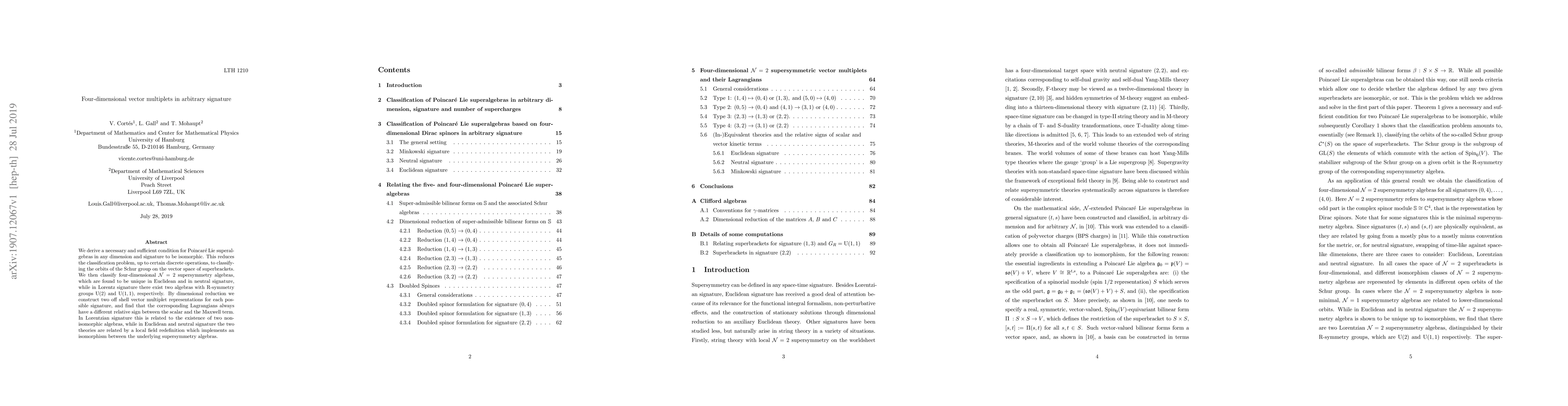 Researchers classified four-dimensional supersymmetry algebras in Euclidean, neutral, Lorentz, and arbitrary signatures, discovering unique algebras in some cases and isomorphic ones with local field redefinitions in others.
