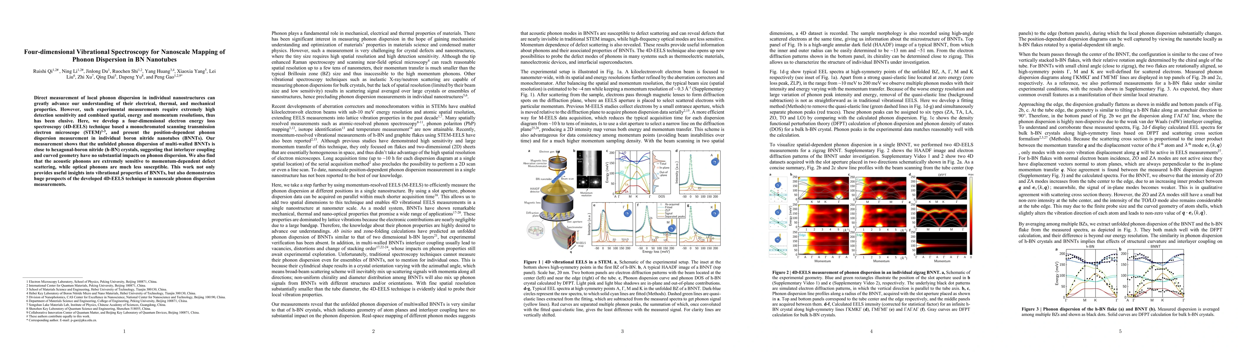 This paper develops a 4D-EELS technique for nanoscale phonon dispersion mapping in BN nanotubes, revealing that multi-walled BNNTs' phonon dispersion closely resembles that of h-BN crystals, indicating minimal impact from interlayer coupling and curvature. The study highlights the technique's potential for detailed phonon studies.