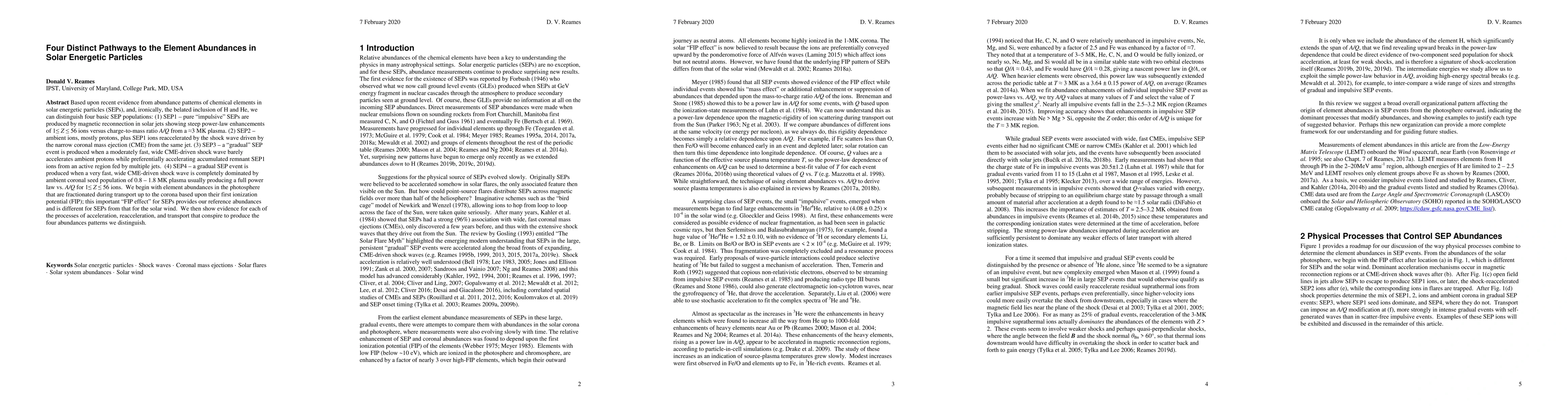 Based upon recent evidence from abundance patterns of chemical elements in solar energetic particles (SEPs), and, ironically, the belated inclusion of H and He, we can distinguish four basic SEP populations: (1) SEP1 - pure "impulsive" SEPs are produced by magnetic reconnection in solar jets showing steep power-law enhancements of 1<= Z <= 56 ions versus charge-to-mass ratio A/Q from a ~3 MK plasma. (2) SEP2 - ambient ions, mostly protons, plus SEP1 ions reaccelerated by the shock wave driven by the narrow coronal mass ejection (CME) from the same jet. (3) SEP3 - a "gradual" SEP event is produced when a moderately fast, wide CME-driven shock wave barely accelerates ambient protons while preferentially accelerating accumulated remnant SEP1 ions from an active region fed by multiple jets. (4) SEP4 - a gradual SEP event is produced when a very fast, wide CME-driven shock wave is completely dominated by ambient coronal seed population of 0.8 - 1.8 MK plasma usually producing a full power law vs. A/Q for 1<= Z <= 56 ions. We begin with element abundances in the photosphere that are fractionated during transport up to the corona based upon their first ionization potential (FIP); this important "FIP effect" for SEPs provides our reference abundances and is different for SEPs from that for the solar wind. We then show evidence for each of the processes of acceleration, reacceleration, and transport that conspire to produce the four abundances patterns we distinguish.