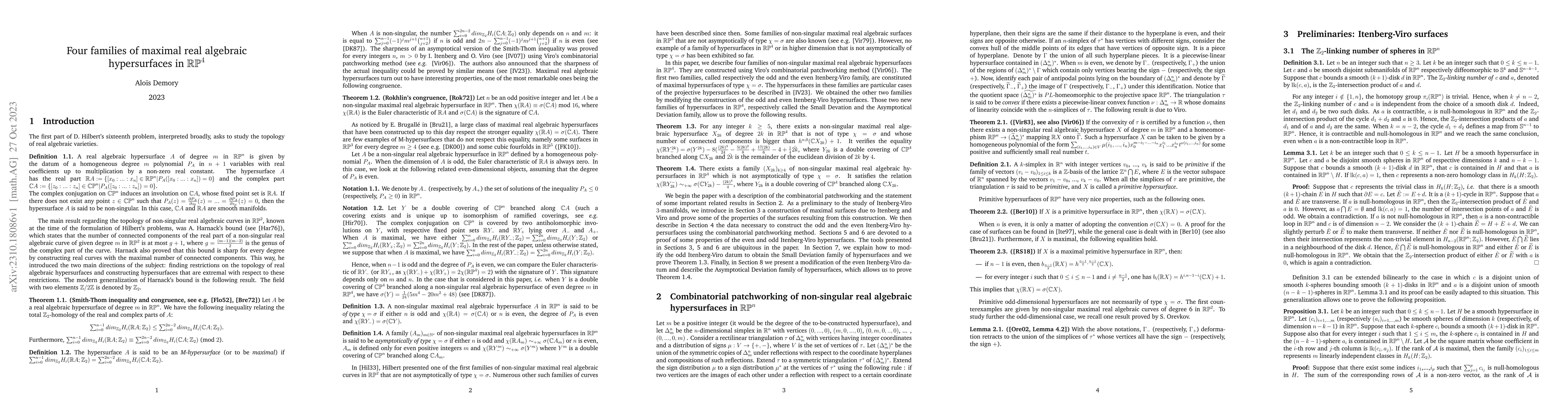 This paper identifies four families of maximal real algebraic hypersurfaces in $\mathbb{RP}^4$ using Viro's combinatorial method, and demonstrates that the Euler characteristic and signature of their complex double coverings are not necessarily equal, showing potential asymptotic differences.