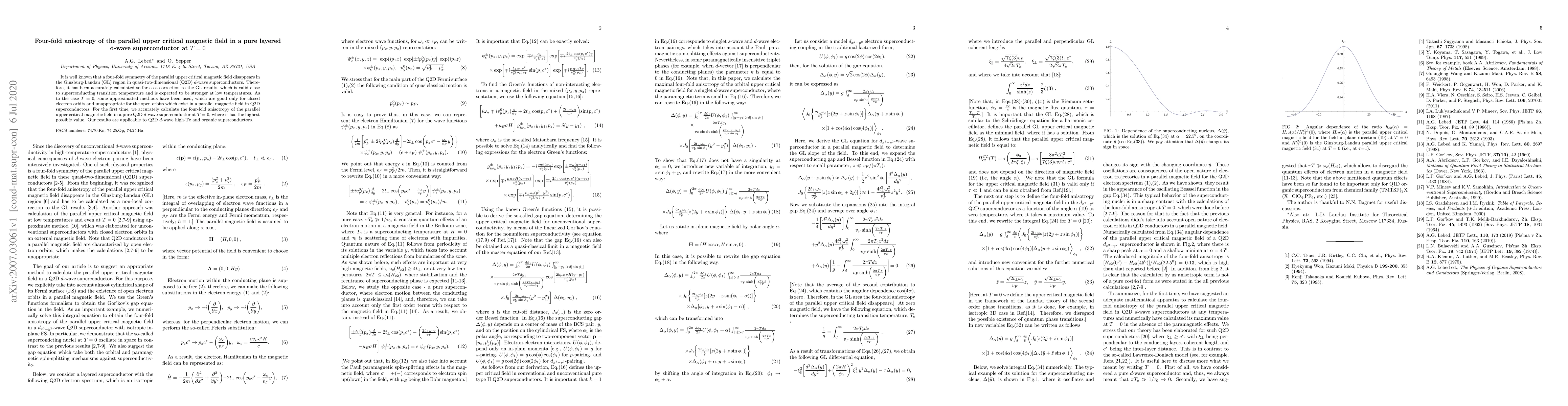 This paper accurately calculates the four-fold anisotropy of the parallel upper critical magnetic field in pure quasi-two-dimensional $d$-wave superconductors at $T=0$, revealing its highest possible value. This work addresses limitations in previous methods and provides results applicable to high-Tc and organic superconductors.