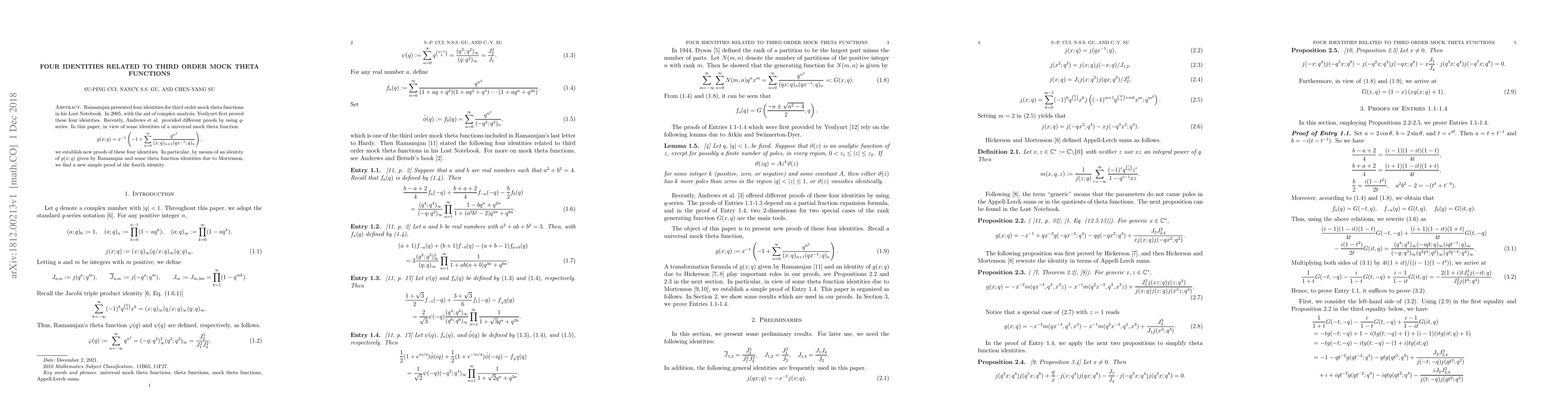 This paper provides new proofs for four identities related to third order mock theta functions originally presented by Ramanujan, using identities of a universal mock theta function and theta function identities due to Mortenson, particularly simplifying the proof of the fourth identity.