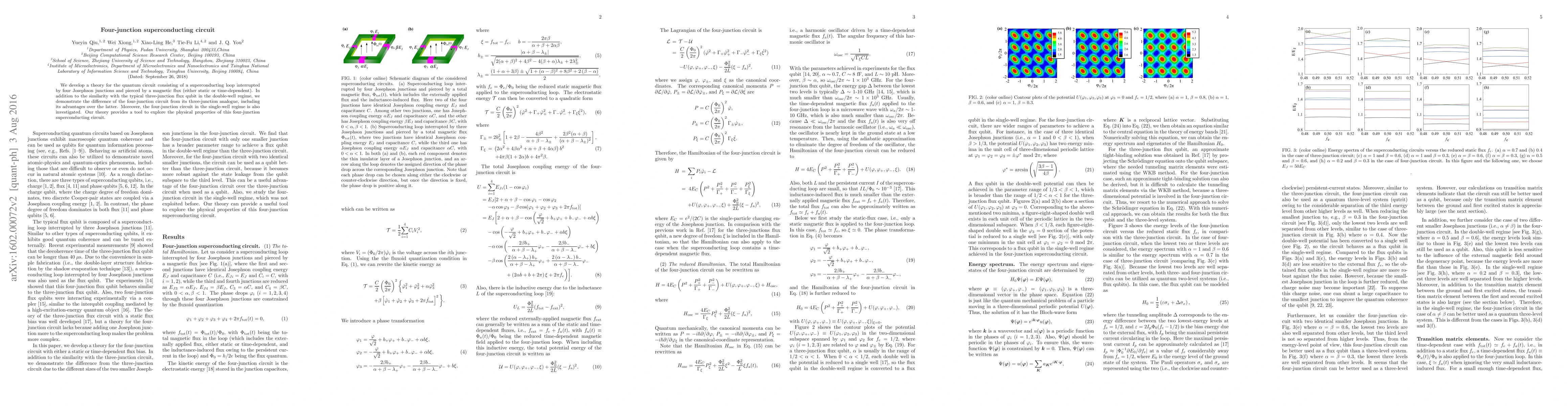 We develop a theory for the quantum circuit consisting of a superconducting loop interrupted by four Josephson junctions and pierced by a magnetic flux (either static or time-dependent). In addition to the similarity with the typical three-junction flux qubit in the double-well regime, we demonstrate the difference of the four-junction circuit from its three-junction analogue, including its advantages over the latter. Moreover, the four-junction circuit in the single-well regime is also investigated. Our theory provides a tool to explore the physical properties of this four-junction superconducting circuit.