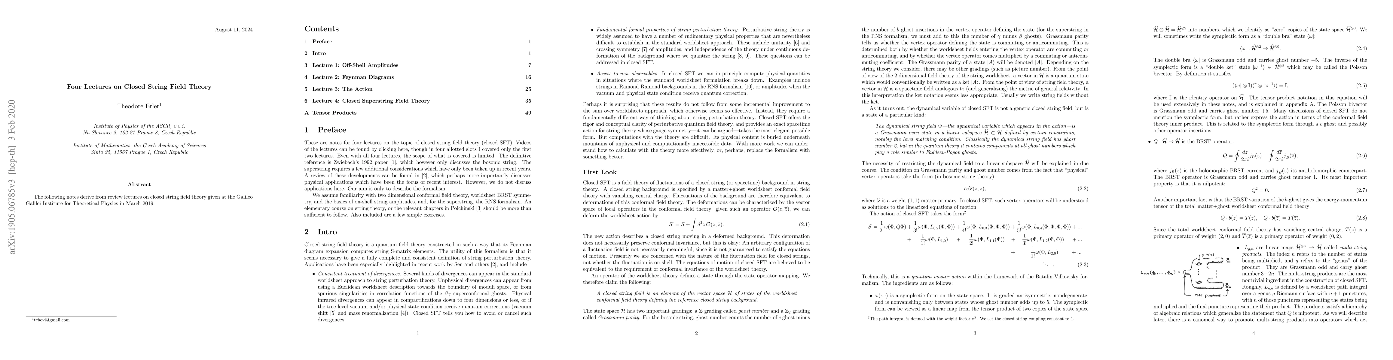Summary: This paper compiles lectures on closed string field theory presented at the Galileo Galilei Institute in 2019, offering a comprehensive review of the subject for theoretical physicists. The notes aim to clarify and elucidate complex aspects of closed string field theory.
