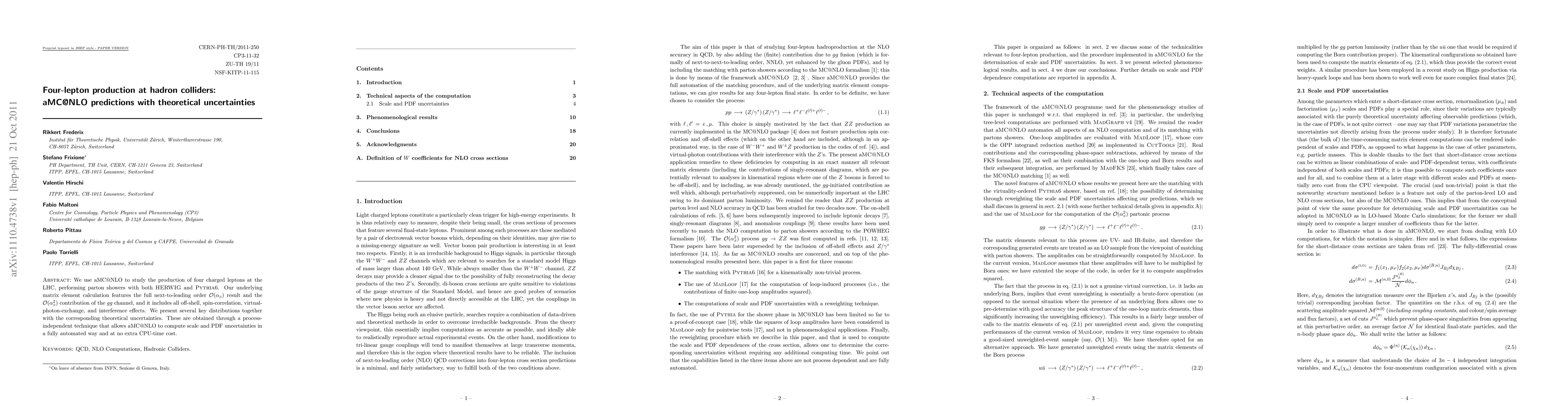 This paper utilizes aMC@NLO to analyze the four-lepton production at the LHC, incorporating full next-to-leading order calculations and parton shower simulations from both HERWIG and Pythia6. It presents key distributions along with theoretical uncertainties computed via an automated, process-independent method.