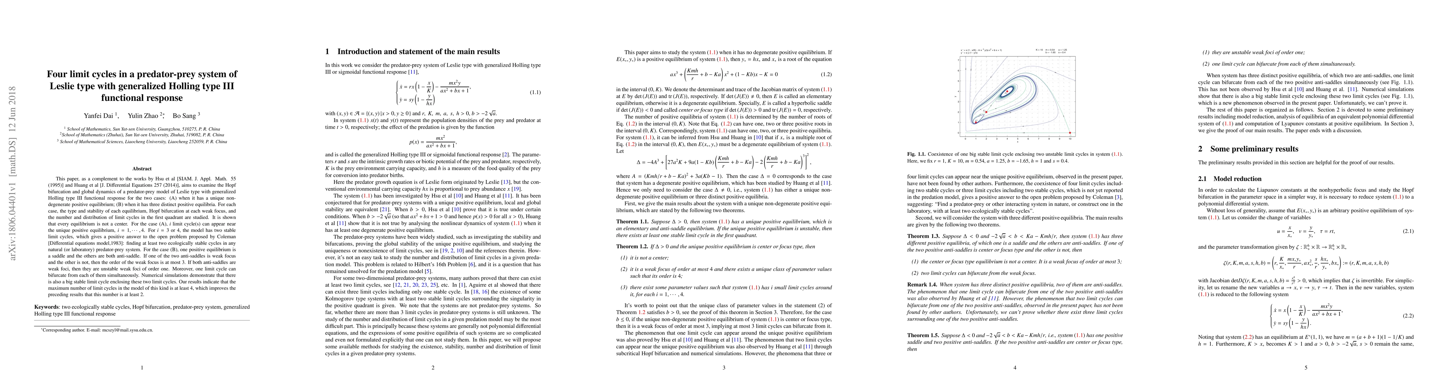 This study investigates four limit cycles in a predator-prey system with unique non-degenerate positive equilibrium or three distinct positive equilibria, finding that the maximum number of limit cycles is at least 4.
