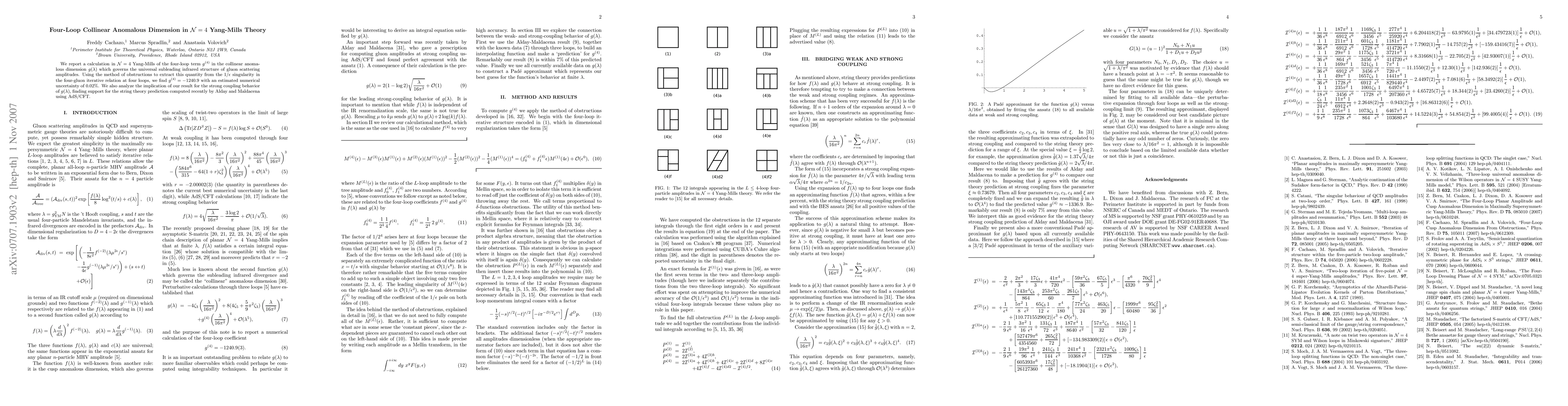 This paper calculates the four-loop term in the collinear anomalous dimension of N=4 Yang-Mills theory, determining g^4 = -1240.9 with high precision. The result supports recent string theory predictions regarding the strong coupling behavior of this dimension.
