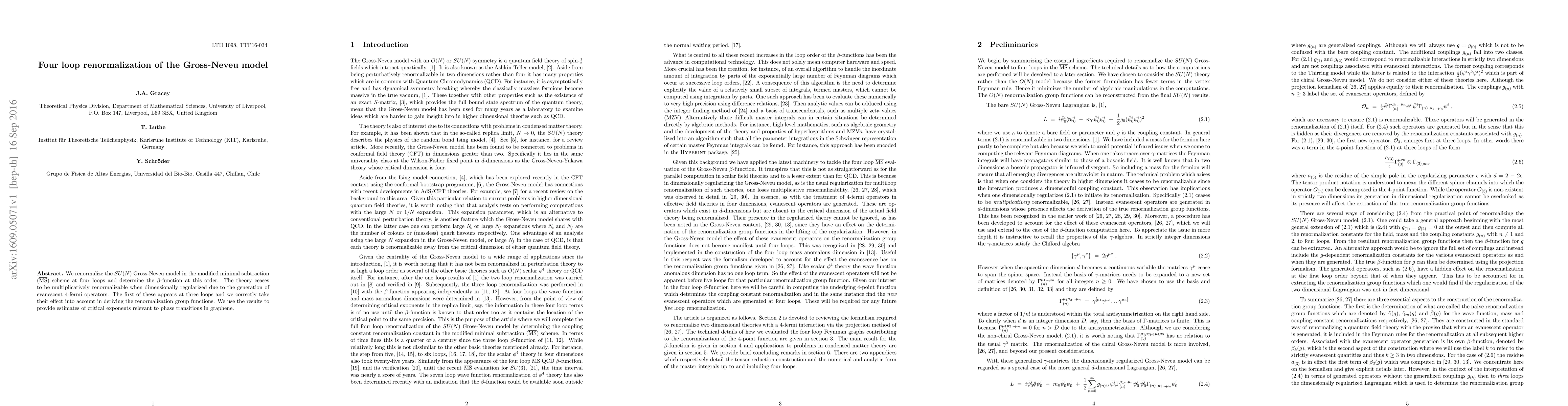 Researchers used the modified minimal subtraction scheme to study the SU(N) Gross-Neveu model at four loops, finding that evanescent operators cause the theory to lose multiplicatively renormalizability.