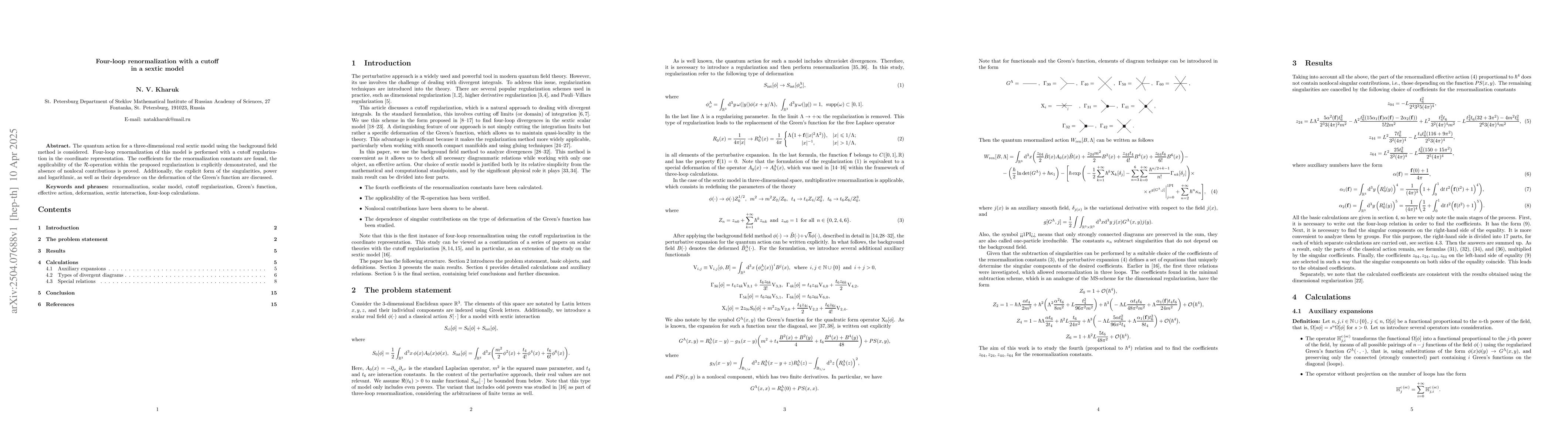 The paper presents a comprehensive analysis of four-loop renormalization in a sextic model, demonstrating the effectiveness of the background field method and cutoff regularization in coordinate space.