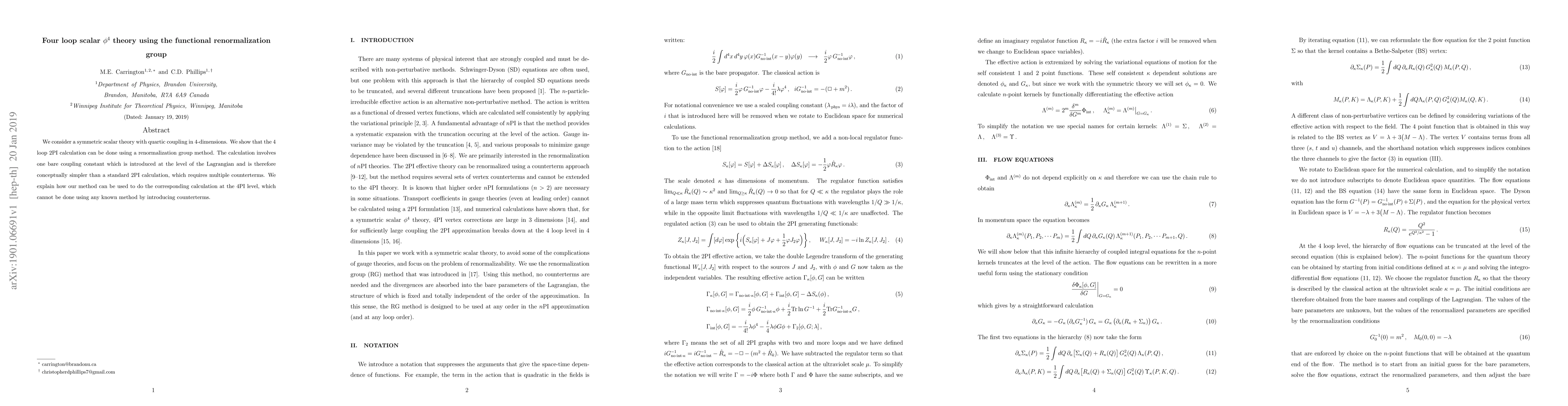 Researchers used functional renormalization to simplify calculations of a 4D scalar theory with quartic coupling, allowing for the calculation at the 4PI level without counterterms.