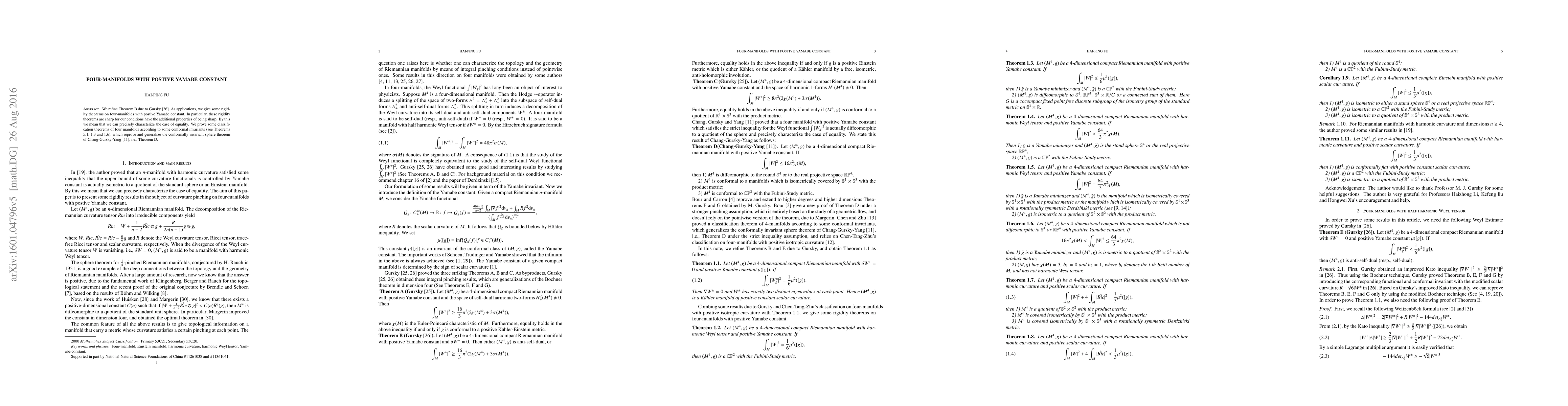 We refine Theorem A due to Gursky \cite{G3}. As applications, we give some rigidity theorems on four-manifolds with postive Yamabe constant. In particular, these rigidity theorems are sharp for our conditions have the additional properties of being sharp. By this we mean that we can precisely characterize the case of equality. We prove some classification theorems of four manifolds according to some conformal invariants (see Theorems 1.3 and 1.6), which generalize the conformally invariant sphere theorem of Chang-Gursky-Yang \cite{CGY}.