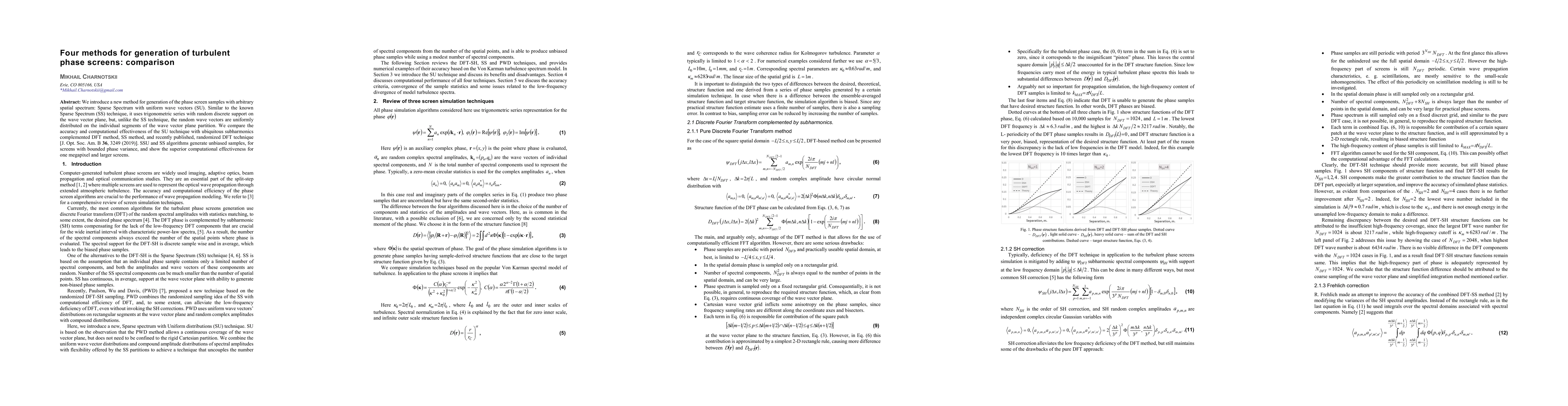 Researchers introduced a new method for generating turbulent phase screens with arbitrary spatial spectrum, called Sparse Spectrum with uniform wave vectors (SU), comparing its accuracy and computational effectiveness with existing methods.