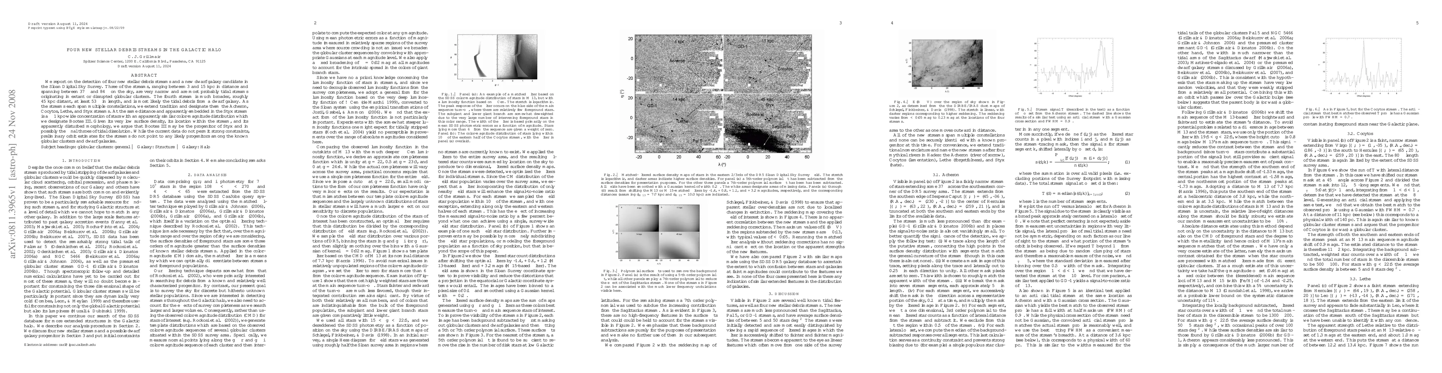 The paper reports the discovery of four new stellar debris streams in the Galactic Halo, likely originating from globular clusters or a dwarf galaxy, and identifies a new dwarf galaxy candidate, Bootes III, potentially dissolving within the Styx stream. Preliminary orbit estimates suggest no known progenitors among existing globular clusters and dwarf galaxies.