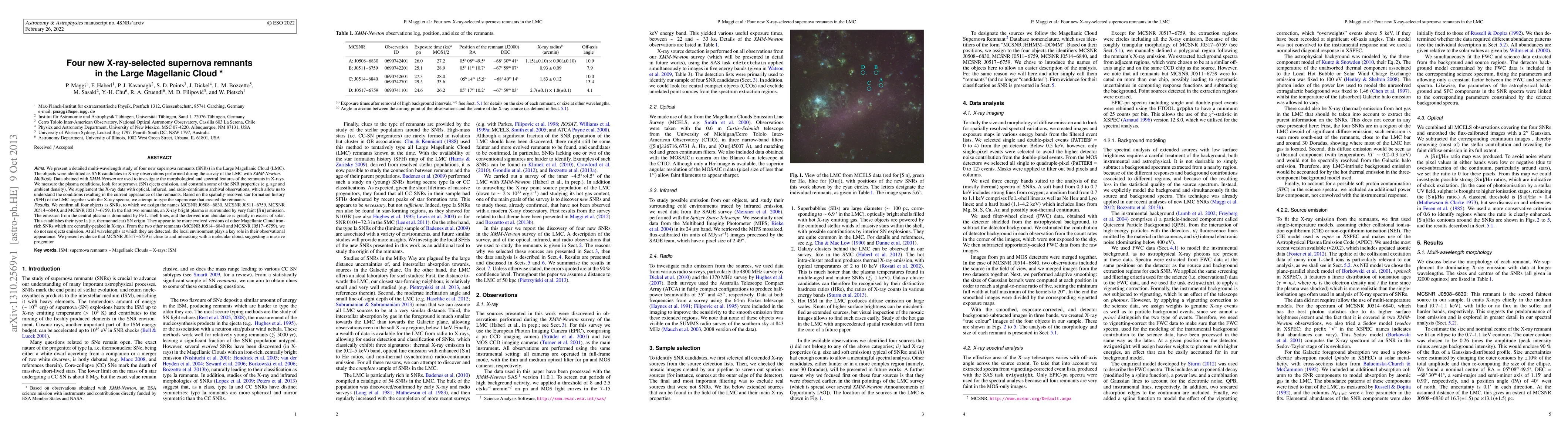 Aims: We present a detailed multi-wavelength study of four new supernova remnants (SNRs) in the Large Magellanic Cloud (LMC). The objects were identified as SNR candidates in X-ray observations performed during the survey of the LMC with XMM-Newton. Methods: Data obained with XMM-Newton are used to investigate the morphological and spectral features of the remnants in X-rays. We measure the plasma conditions, look for supernova (SN) ejecta emission, and constrain some of the SNR properties (e.g. age and ambient density). We supplement the X-ray data with optical, infrared, and radio-continuum archival observations, which allow us to understand the conditions resulting in the current appearance of the remnants. Based on the spatially-resolved star formation history (SFH) of the LMC together with the X-ray spectra, we attempt to type the supernovae that created the remnants. Results: We confirm all four objects as SNRs, to which we assign the names MCSNR J0508-6830, MCSNR J0511-6759, MCSNR J0514-6840, and MCSNR J0517-6759. In the first two remnants, an X-ray bright plasma is surrounded by very faint [S II] emission. The emission from the central plasma is dominated by Fe L-shell lines, and the derived iron abundance is greatly in excess of solar. This establishes their type Ia (i.e. thermonuclear) SN origin. They appear to be more evolved versions of other Magellanic Cloud iron-rich SNRs which are centrally-peaked in X-rays. From the two other remnants (MCSNR J0514-6840 and MCSNR J0517-6759), we do not see ejecta emission. At all wavelengths at which they are detected, the local environment plays a key role in their observational appearance. We present evidence that MCSNR J0517-6759 is close to and interacting with a molecular cloud, suggesting a massive progenitor.
