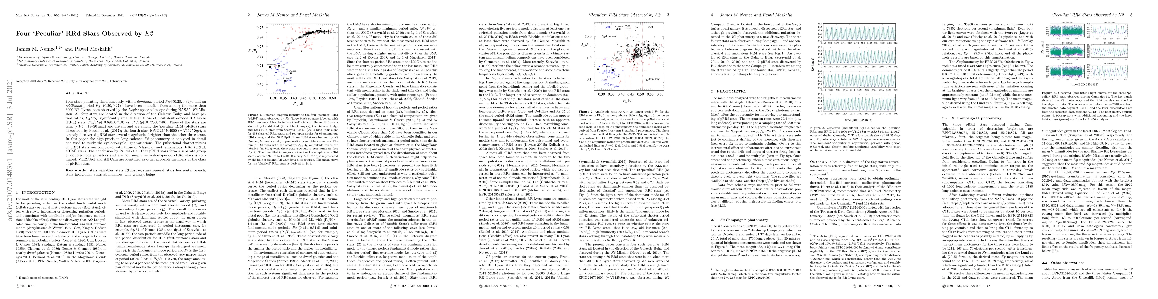 Four stars pulsating simultaneously with a dominant period $P_D$$\in$(0.28,0.39) d and an {\it additional} period $P_A$$\in$(0.20,0.27) d have been identified from among the more than 3000 RR Lyrae stars observed by the Kepler space telescope during NASA's K2 Mission. All four stars are located in the direction of the Galactic Bulge and have period ratios, $P_A$/$P_D$, significantly smaller than those of most double-mode RR Lyrae (RRd) stars: $P_A$/$P_D$$\in$(0.694,0.710) vs. $P_1$/$P_0$$\in$(0.726,0.748). Three of the stars are faint ($<$$V$$>$=18--20 mag) and distant and are among the `peculiar' RRd (pRRd) stars discovered by Prudil et al. (2017); the fourth star, EPIC 216764000 (=V1125 Sgr), is a newly discovered pRRd star several magnitudes brighter than the other three stars. In this paper the high-precision long-cadence K2 photometry is analyzed in detail and used to study the cycle-to-cycle light variations. The pulsational characteristics of pRRd stars are compared with those of `classical' and `anomalous' RRd (cRRd, aRRd) stars. The conclusion by Prudil et al. that pRRd stars form a separate group of double-mode pulsators and are not simply very-short-period cRRd stars is confirmed. V1127 Aql and AH Cam are identified as other probable members of the class of pRRd stars.