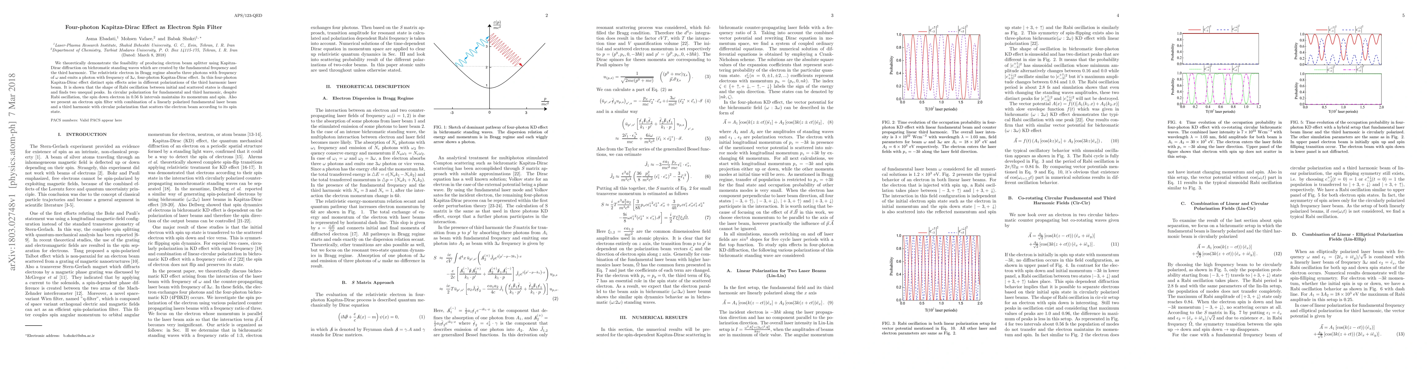 The research demonstrates a four-photon Kapitza-Dirac effect that can be used to split electron beams and filter them based on spin states through bichromatic standing waves. The effect reveals distinct spin polarizations, enabling control over electron momentum and spin over short time intervals.