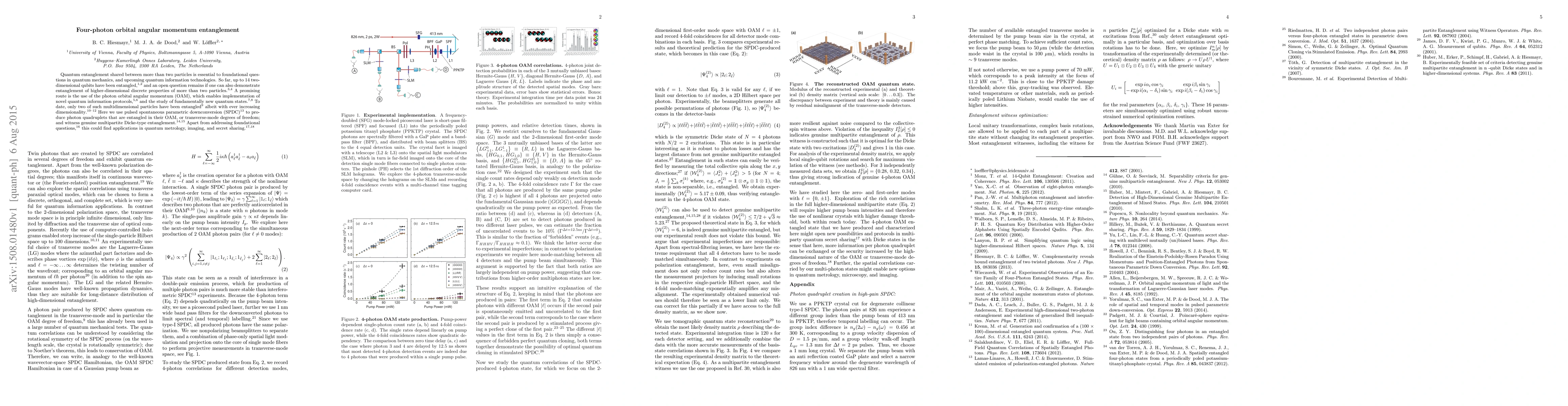 This paper demonstrates the entanglement of four photons in their orbital angular momentum (OAM), achieving genuine multipartite Dicke-type entanglement. This advancement could lead to novel quantum information protocols and applications in quantum metrology, imaging, and secure communication.