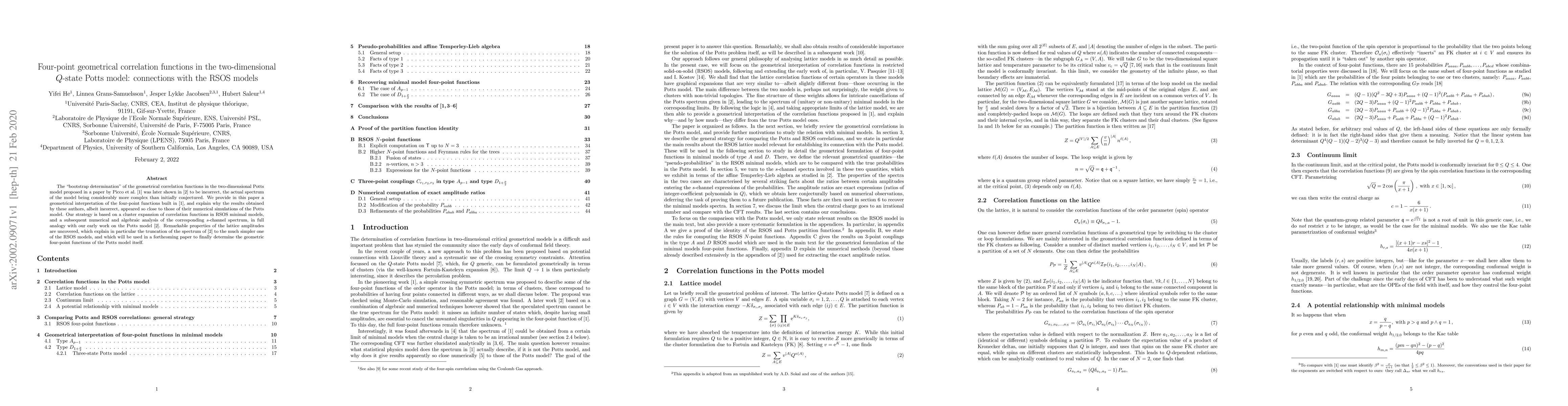 This paper corrects previous errors in determining geometrical correlation functions in the two-dimensional Potts model, providing a new geometrical interpretation of four-point functions and explaining the similarity to earlier incorrect results. The authors use cluster expansion and analysis of RSOS models to uncover properties that simplify the spectrum.
