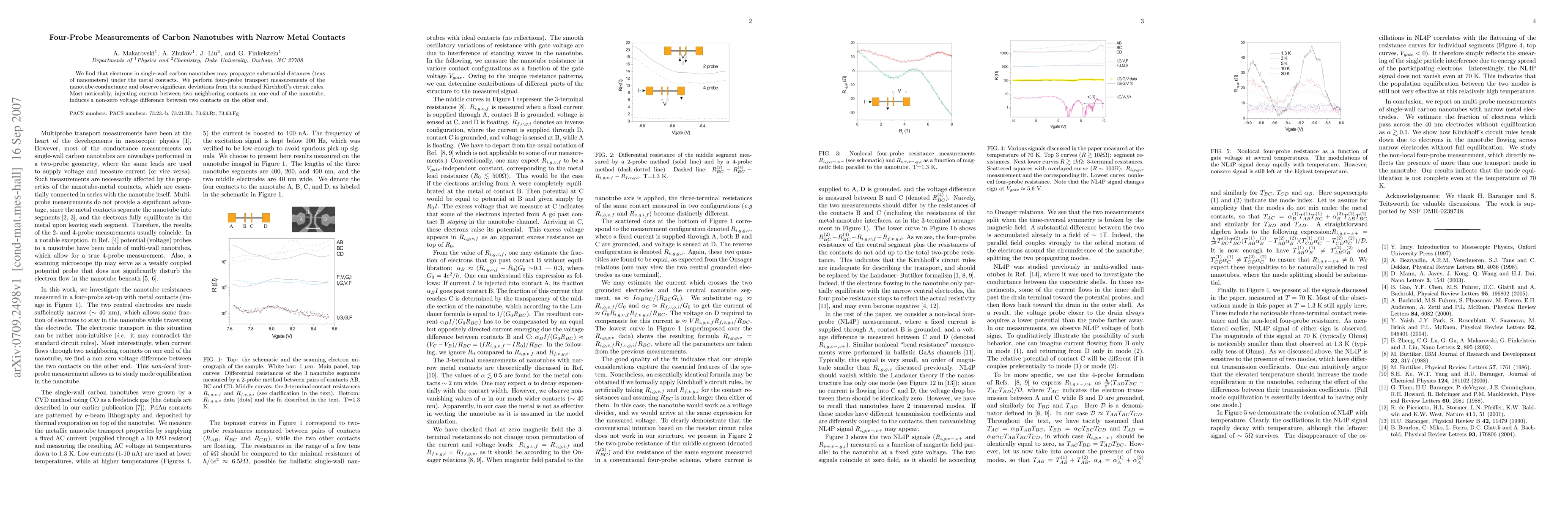 This study reveals that electrons in single-wall carbon nanotubes can travel long distances under metal contacts, leading to significant deviations from standard Kirchhoff's circuit rules in four-probe transport measurements, where current injection between two contacts induces a non-zero voltage across distant contacts.