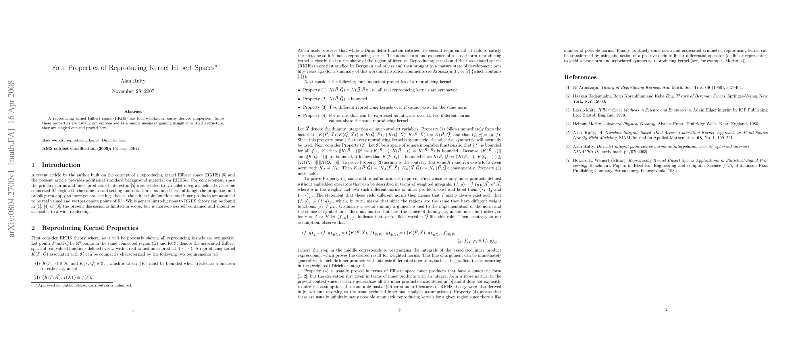 A reproducing kernel Hilbert space (RKHS) has four well-known easily derived properties. Since these properties are usually not emphasized as a simple means of gaining insight into RKHS structure, they are singled out and proved in this brief article.