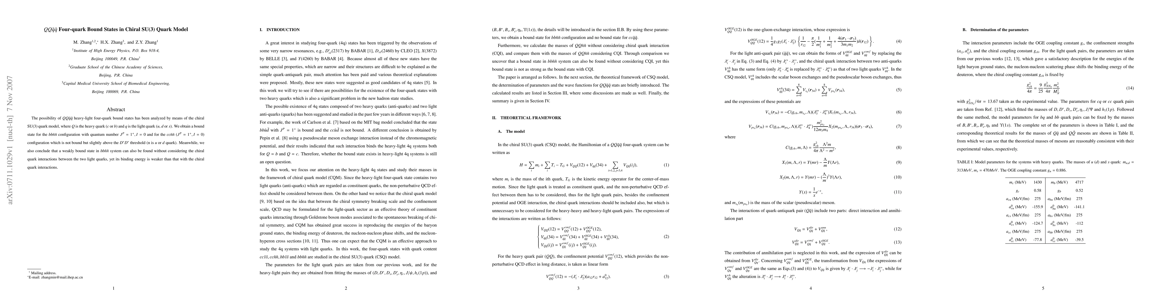The paper presents a detailed analysis of four-quark bound states using the chiral SU(3) quark model, including the calculation of energies and wavefunctions for specific heavy-light quark configurations.