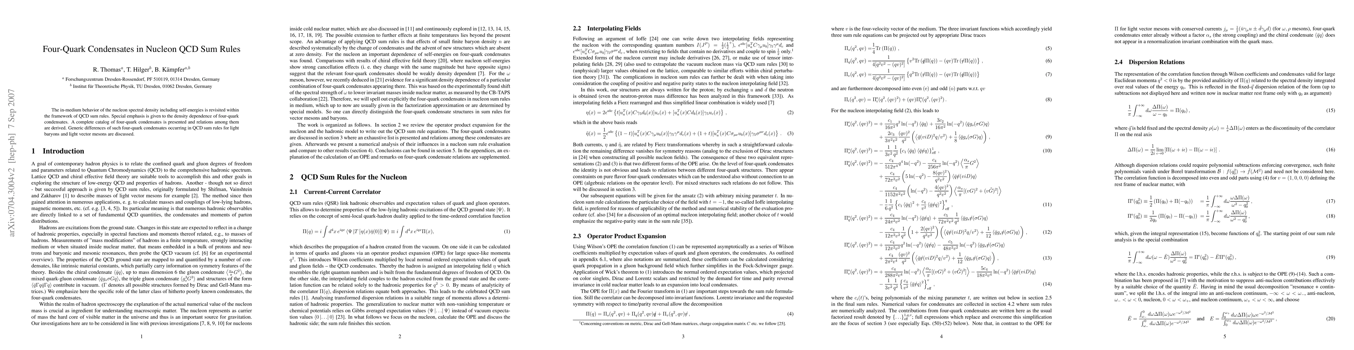 This study revisits nucleon spectral density in medium using QCD sum rules, focusing on the density dependence of four-quark condensates. It presents a comprehensive catalog of these condensates and explores their differences in light baryons versus vector mesons.