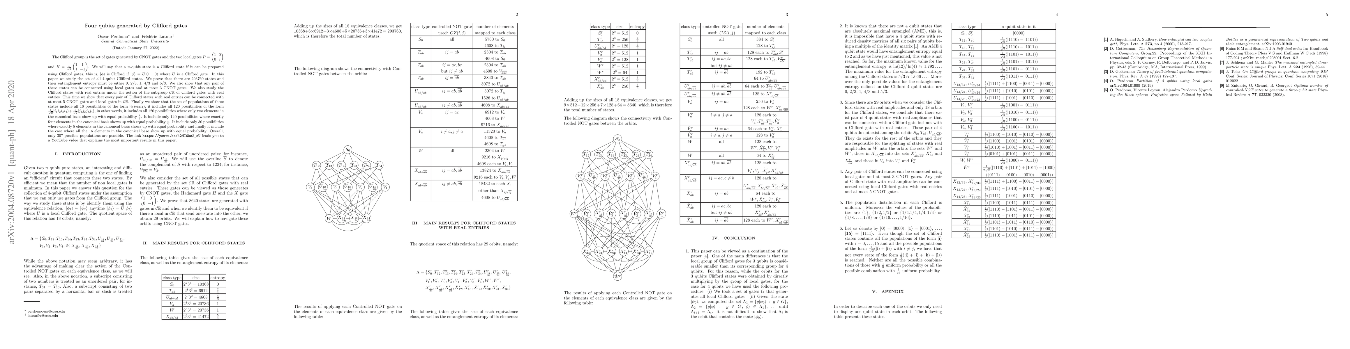 This paper identifies and categorizes all 4-qubit Clifford states, proving there are 293,760 such states with specific entanglement entropy values. It demonstrates connectivity between any pair of these states using local gates and a limited number of CNOT gates, detailing the structure and operations within groups of states.